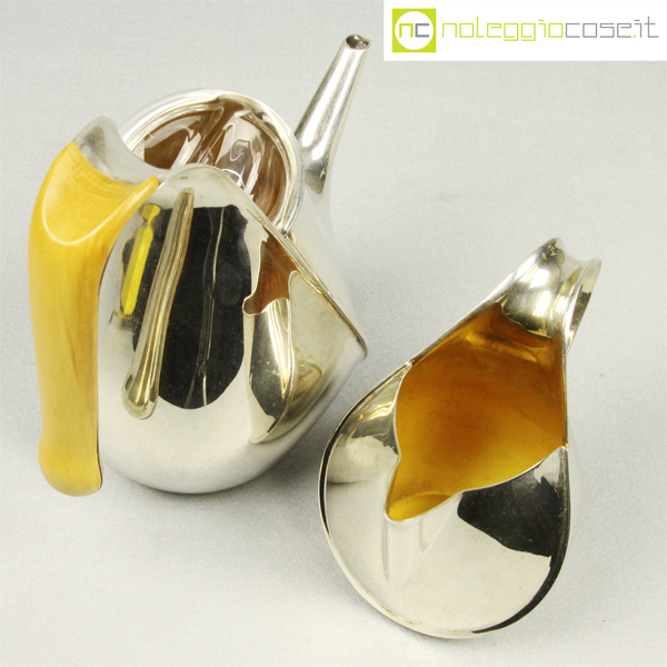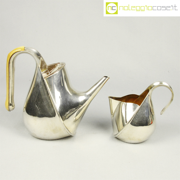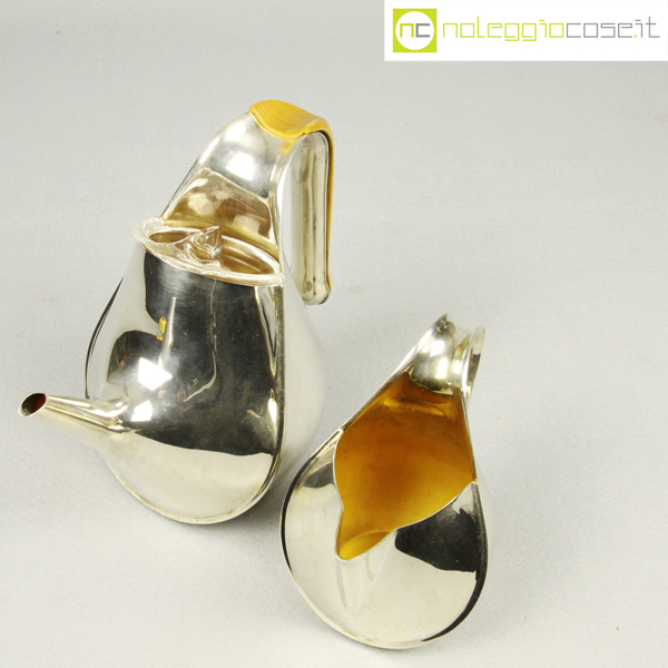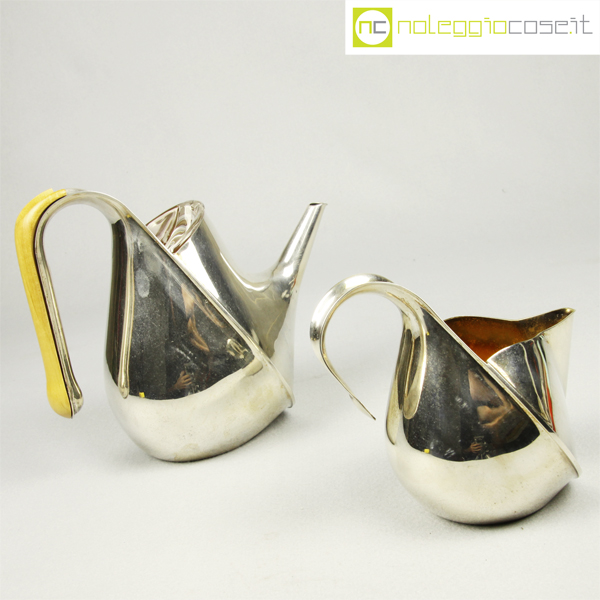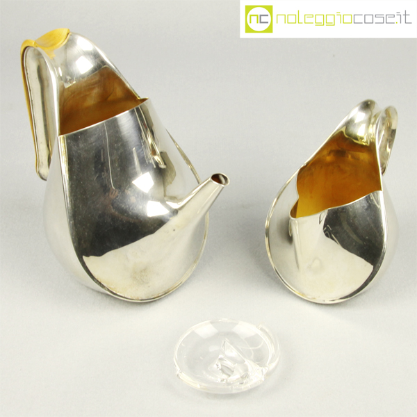 Alessi, teiera mod. 90007, lattiera mod. 90008, Oscar Tusquets, 1984, teiera cm 20x11x18, lattiera cm 13x10x12,5