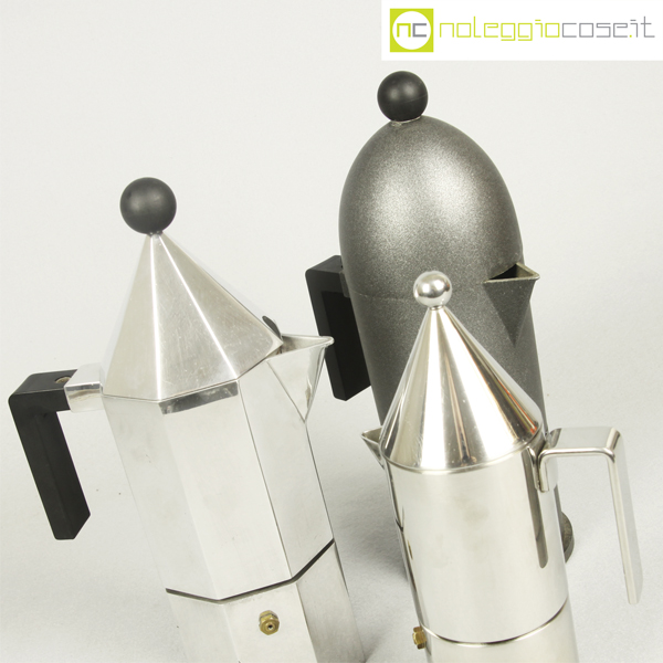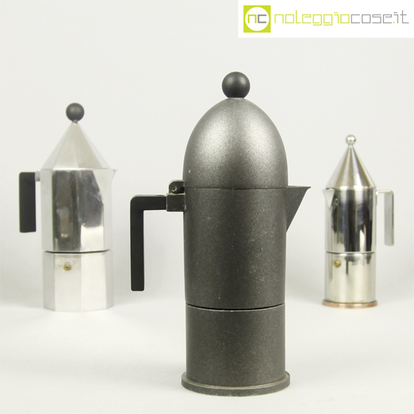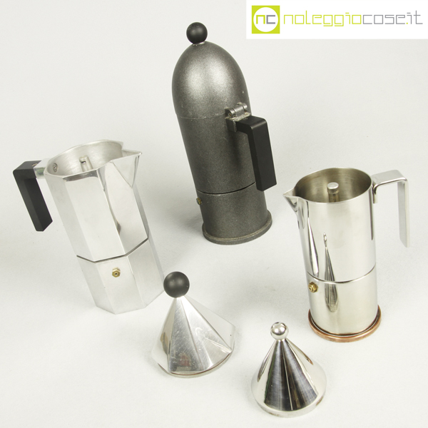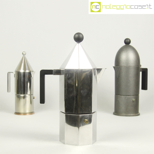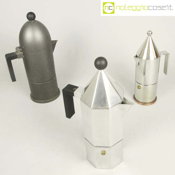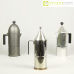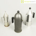 Alessi, caffettiere La Cupola, La Conica e Ottagonale, Aldo Rossi, 1988, La Cupola cm 17x10x28, La Conica cm 11×7,5×23, Ottagonale cm 17x10x28
