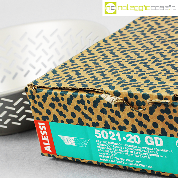 Alessi, cestino rotondo traforato 5021.20 GD, Ettore Sottsass, 1981, cm 20×20 – h 8