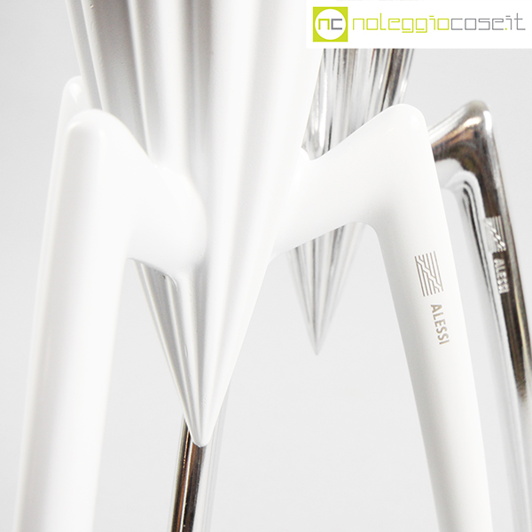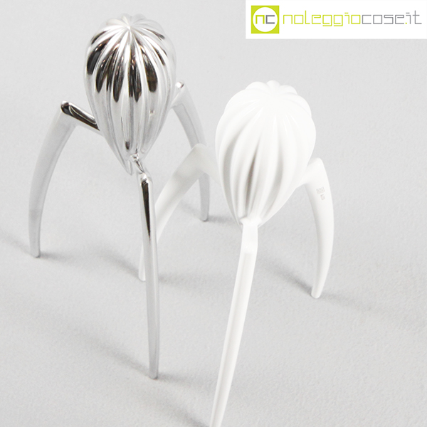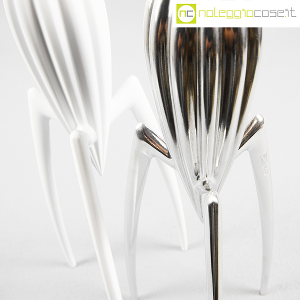 Alessi, spremiagrumi Juicy Salif, cromo e bianco, Philippe Starck, 1990-2015, cm 12×12 – h 30