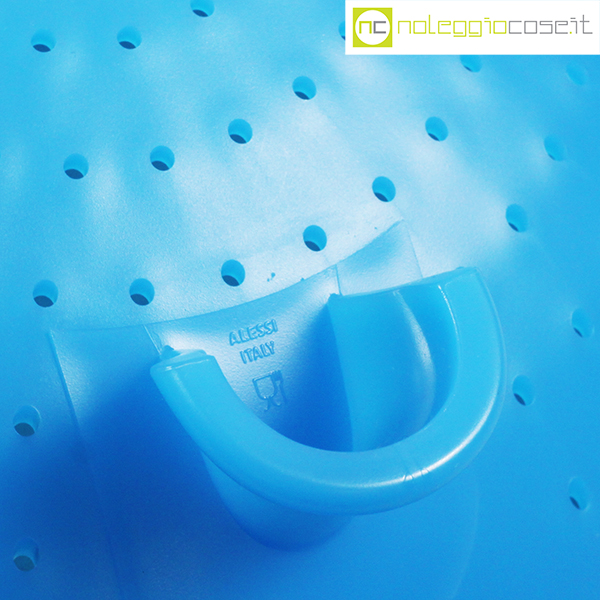 Alessi, scolapasta azzurro mod. EM03, Enzo Mari, 2003, cm 33×25 – h 12,5