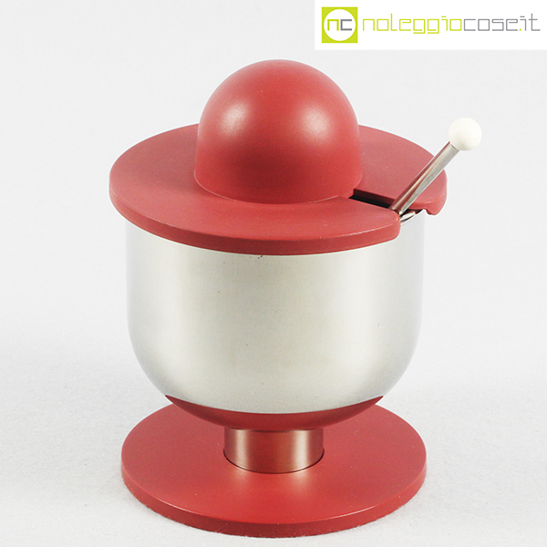 Alessi, zuccheriera con cucchiaio ES11R, Ettore Sottsass, 1998, cm 14×14 – h 18,5