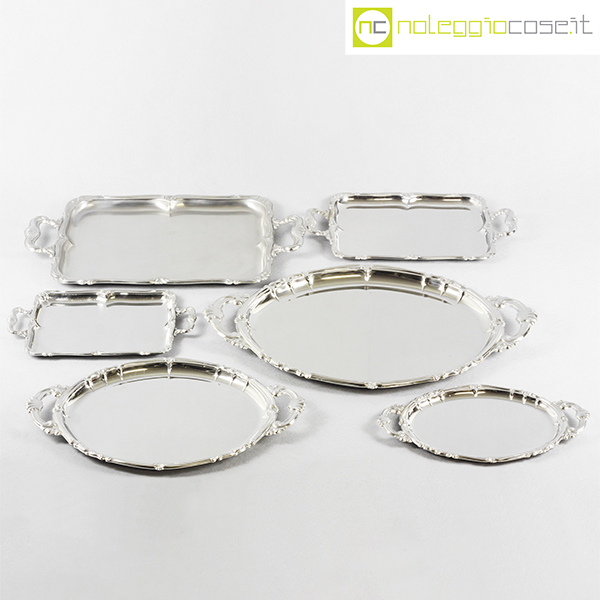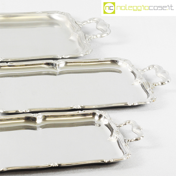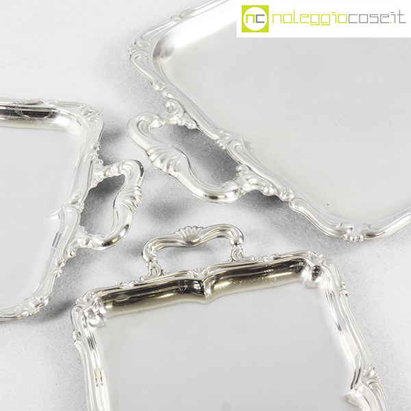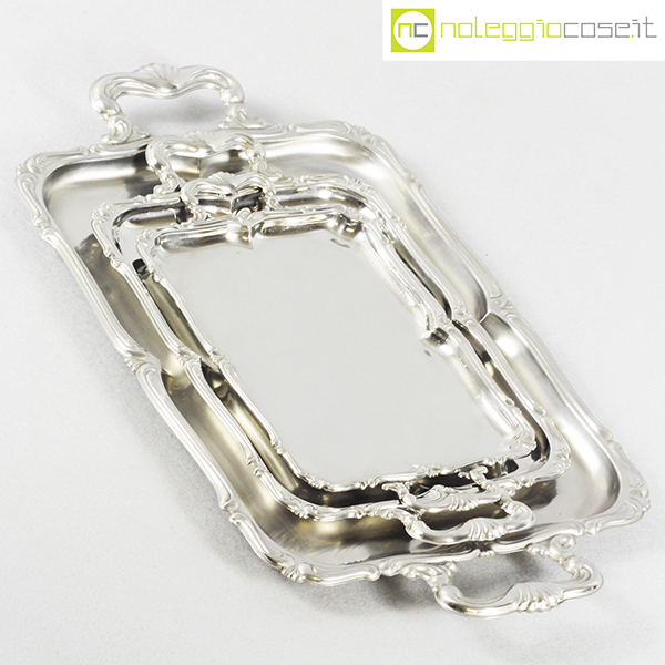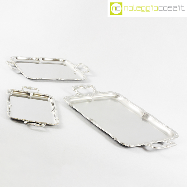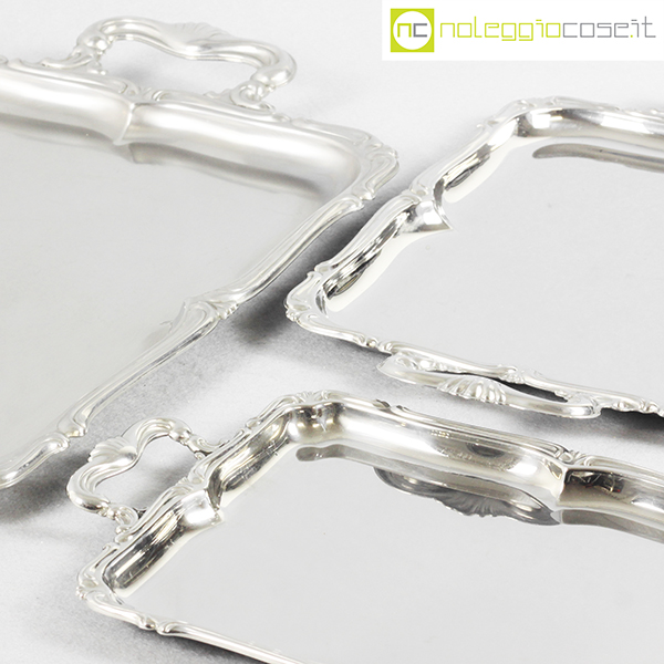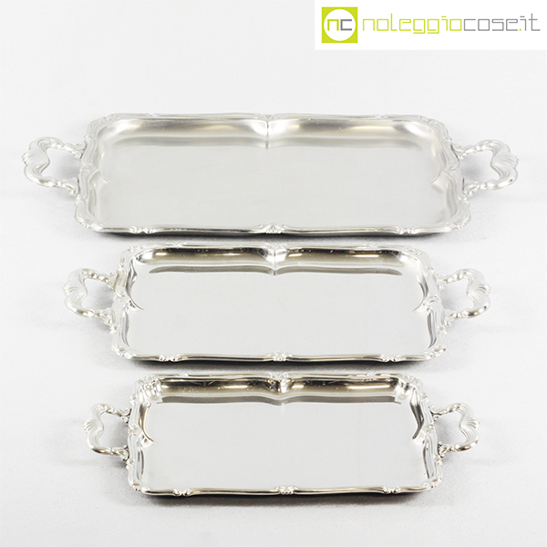Alfra-Alessi, set vassoi rettangolari serie Barocco, 1960, grande cm 52×31, medio cm 39×23, piccolo 32×19