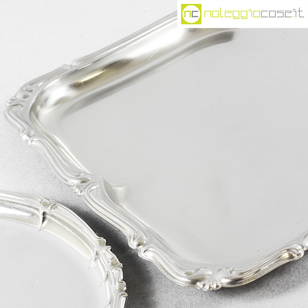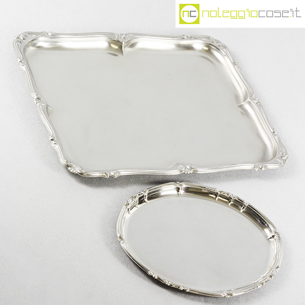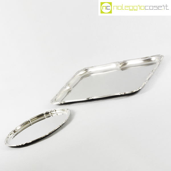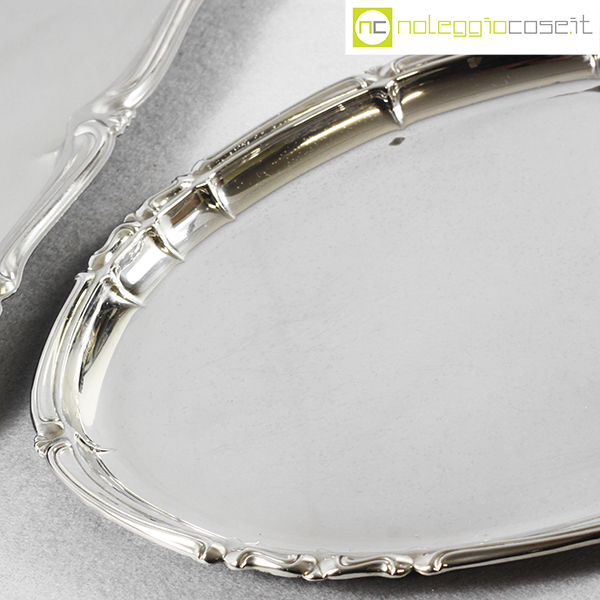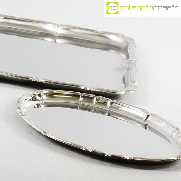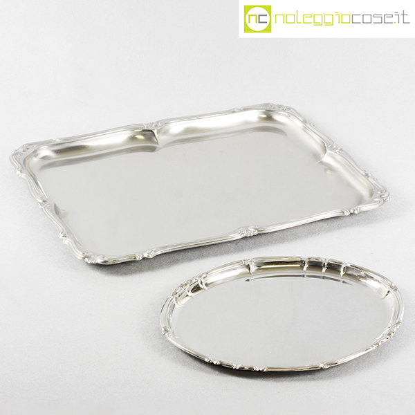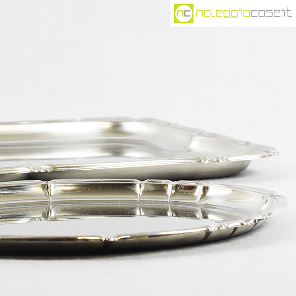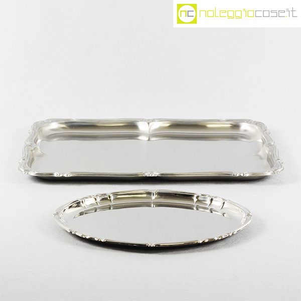 Alfra-Alessi, vassoi senza manici serie Barocco, 1960, rettangolare cm 45×34, ovale cm 30×24