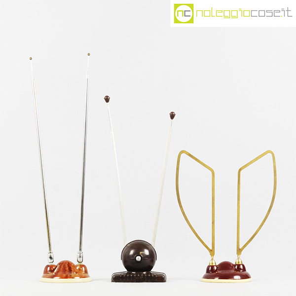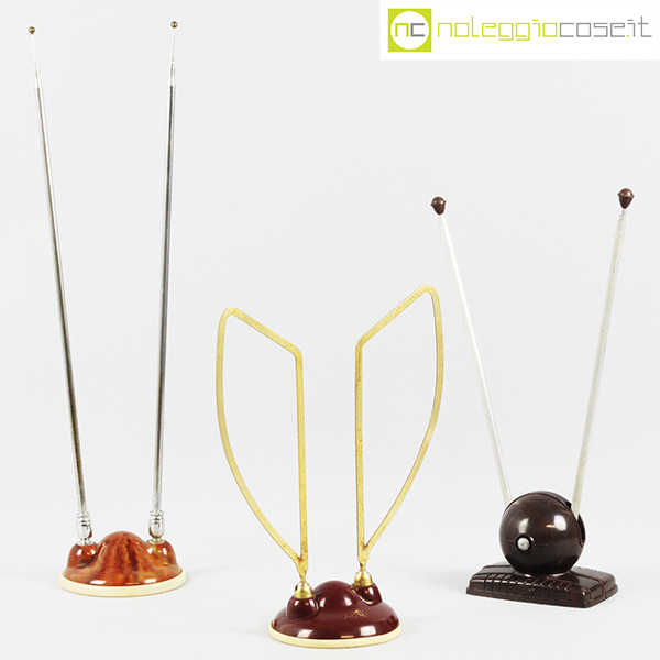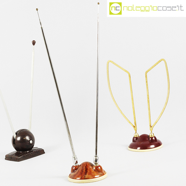Antenne TV anni ’40/’50, 1940 circa, mod. lungo cm 10,5×10,5×45, mod. con ali cm 20×10,5×26, mod. base marrone cm 11x7x34