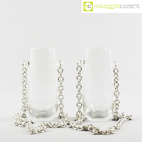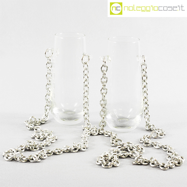 Arform, bicchieri con catenella Salpavi, Paolo Tilche, 1959, bicchieri cm 9×6,5×14,5, catenella l cm 48 circa