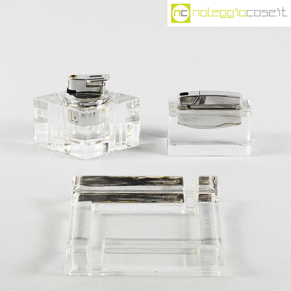 Arnolfo di Cambio, accendini e posacenere serie Cibi, Cini Boeri, 1973, accendino rettangolare cm 8×4,5×5,5, accendino rombo cm 10x7x7, posacenere cm 13x13x2,5