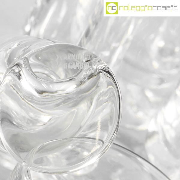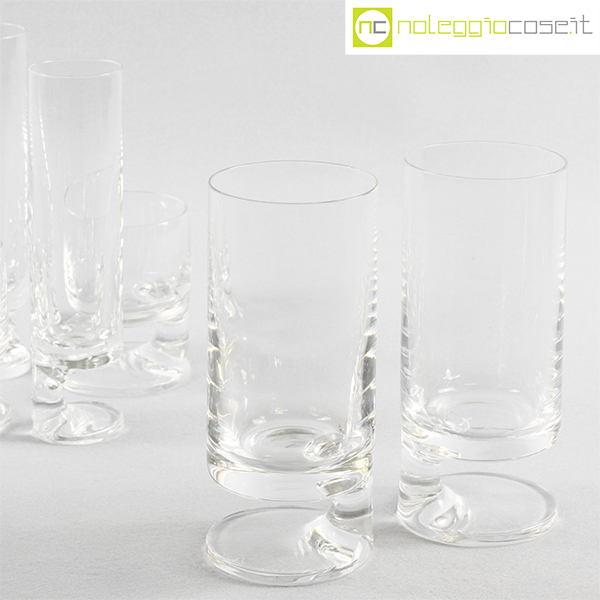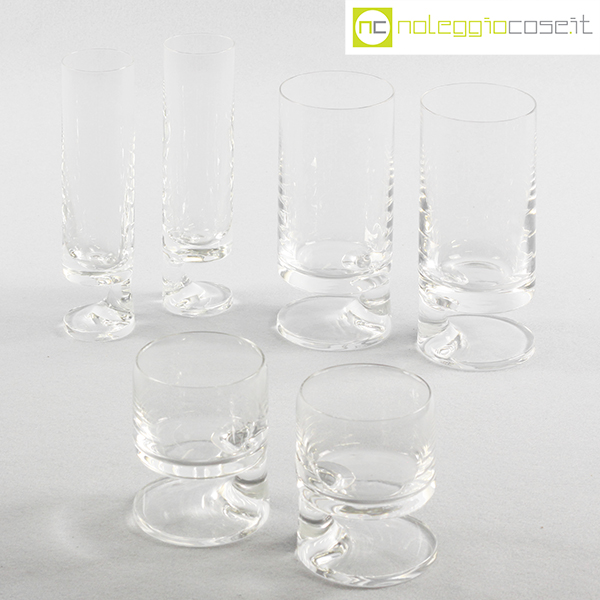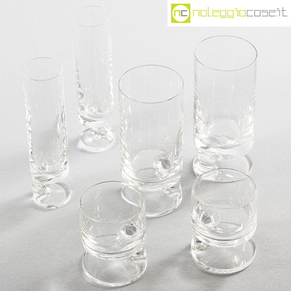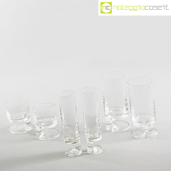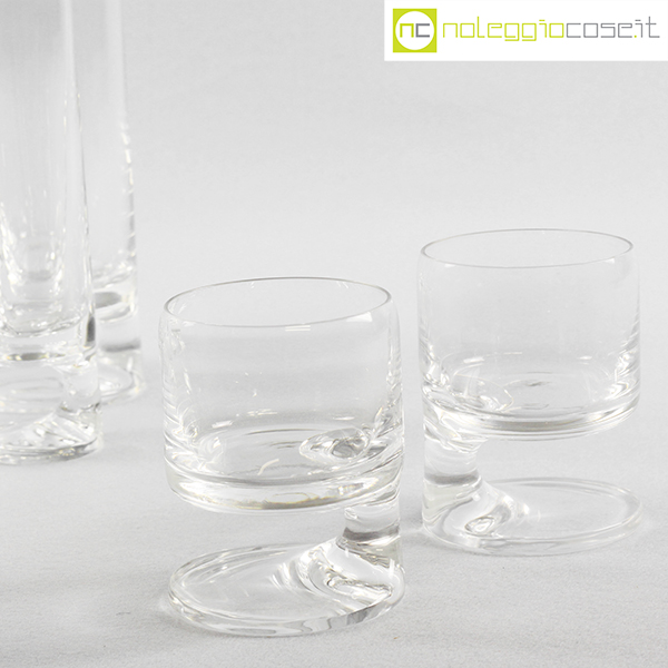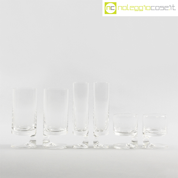 Arnolfo Di Cambio, bicchieri Smoke trasparenti, Joe Colombo, 1964, flute cm 4,5×4,5×18, acqua cm 7x7x16, bassi cm 7x7x9