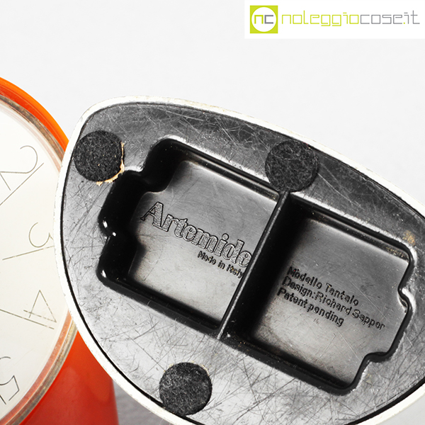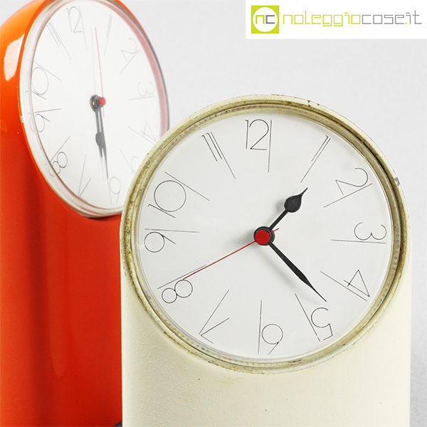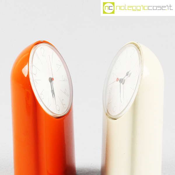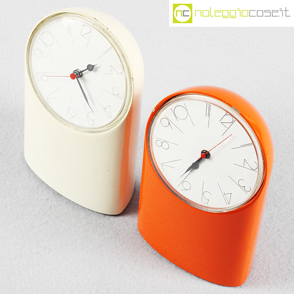 Artemide, orologio da tavolo Tantalo bianco (latte) e arancione, Richard Sapper, 1971, cm 8×5,5 – h 15