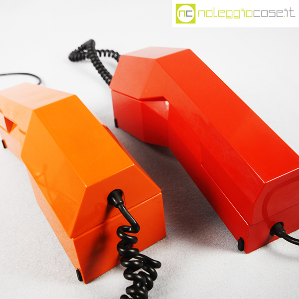 Auso Siemens, telefono Rialto rosso e arancione, Design Group Italia, 1979, cm 7×22,5 – h 11