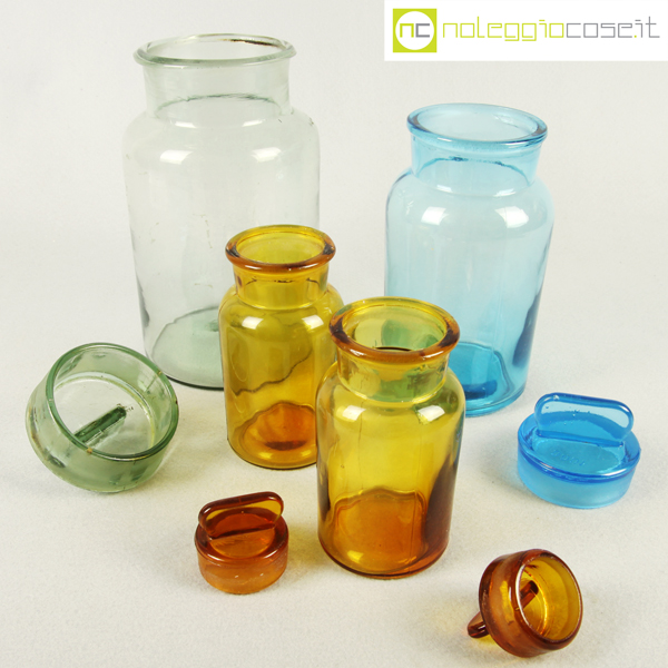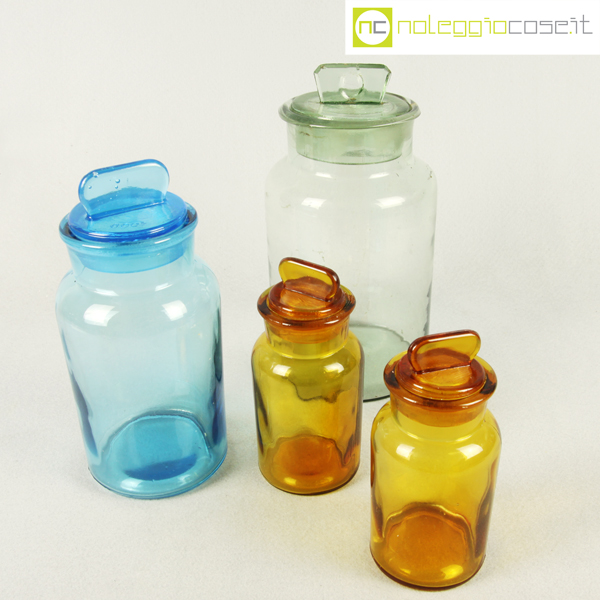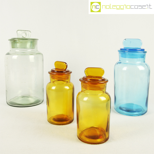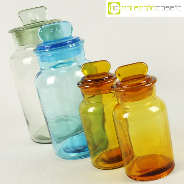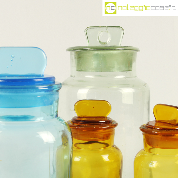 Barattoli da drogheria colorati in vetro, diametro da cm 7 a 12, altezza cm da 15 a 25