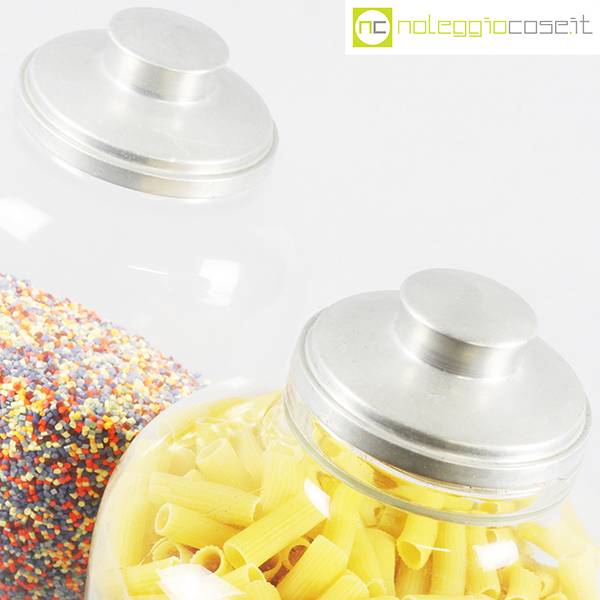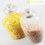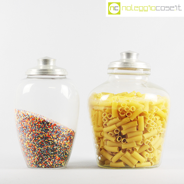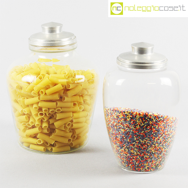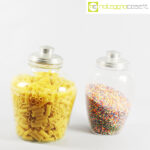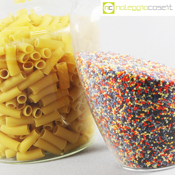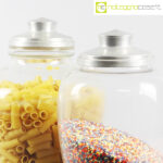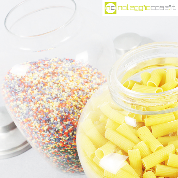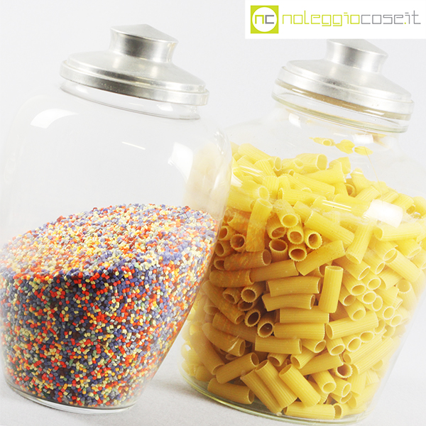 Barattoli da drogheria grandi in vetro, con pasta cm 23x23x34, con grani colorati cm 18,5×18,5×32