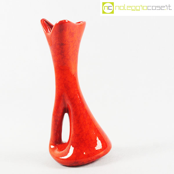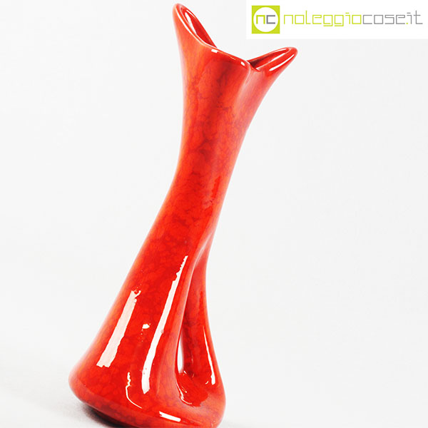 Bertoncello Ceramiche, vaso organico rosso, anni ’70, cm 14×12 – h 32,5