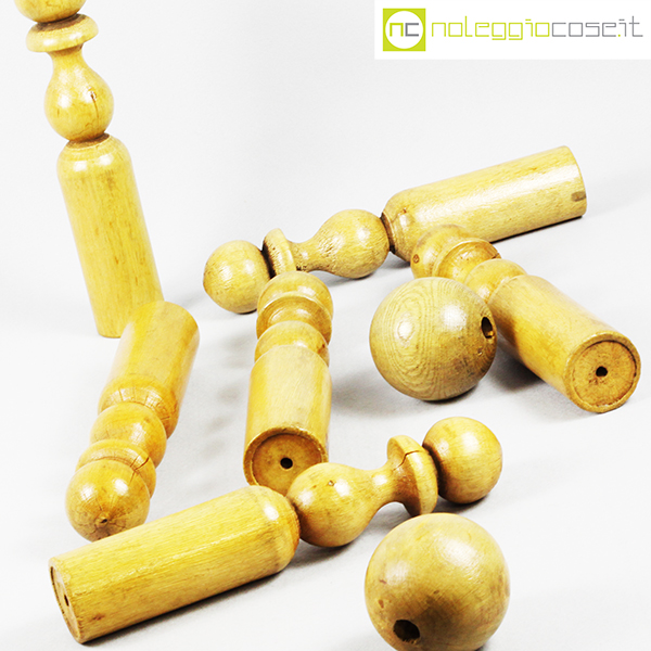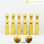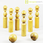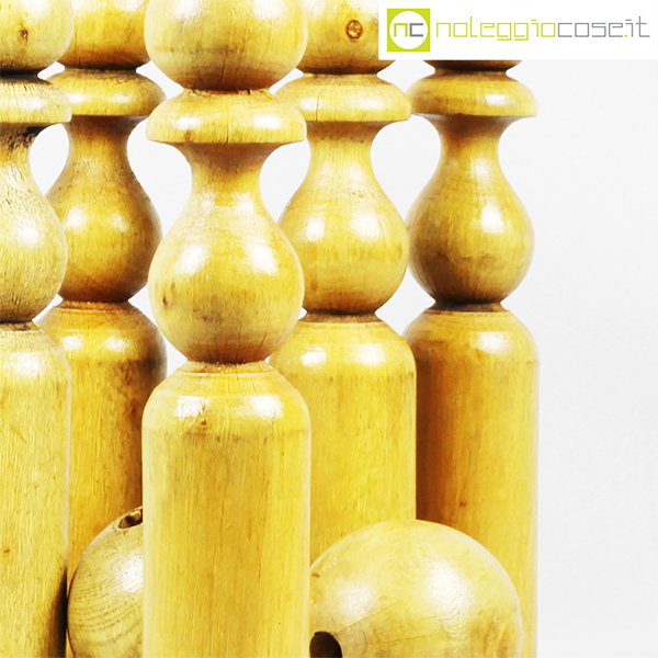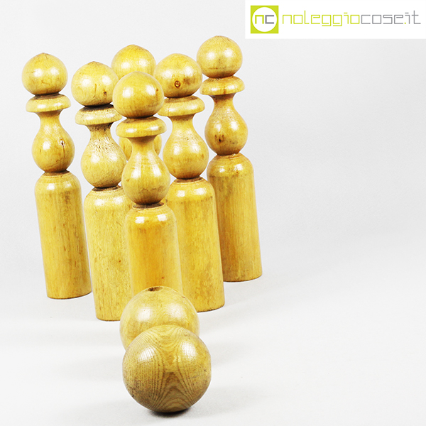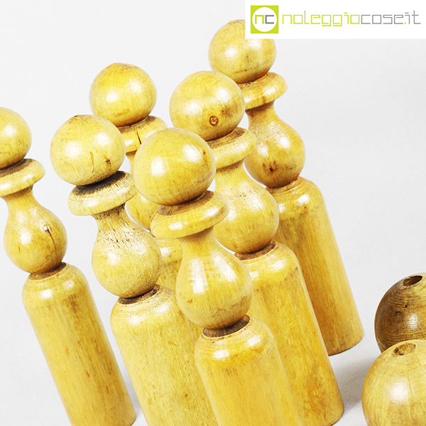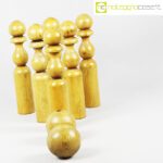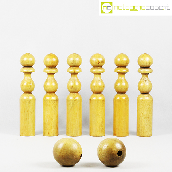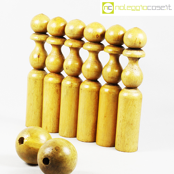 Birilli e sfere in legno per bowling vintage, birilli cm 5,5×5,5×31, sfere cm 8,5×8,5×8,5