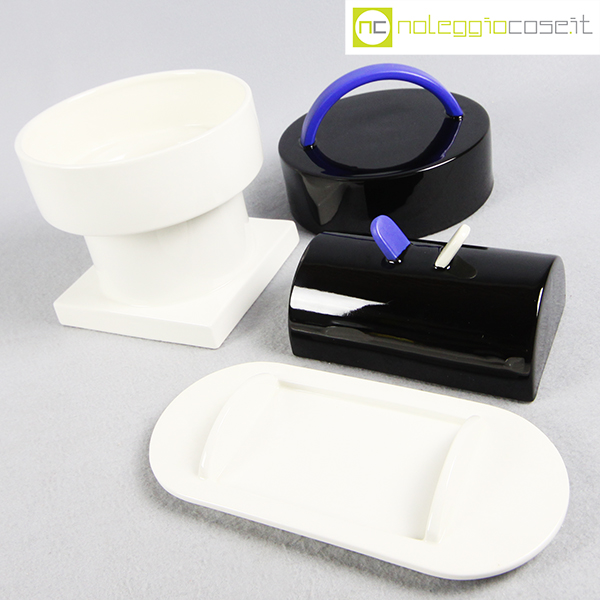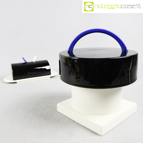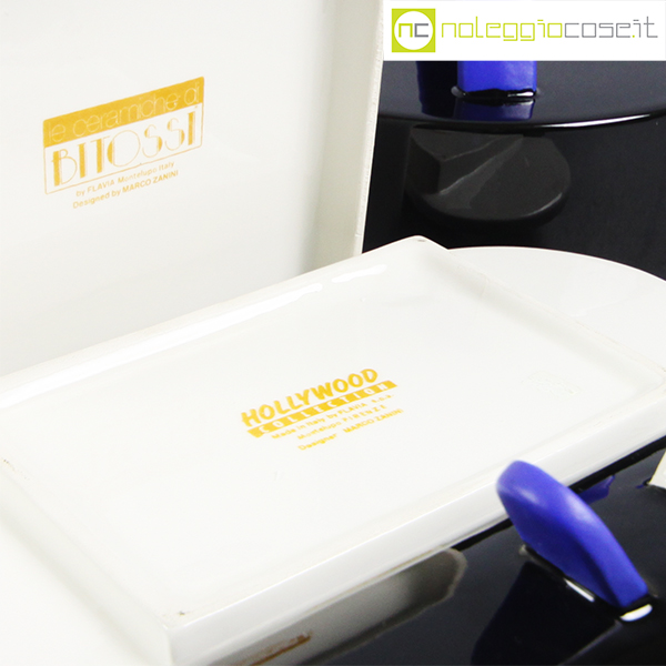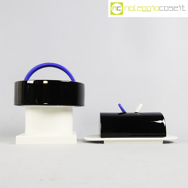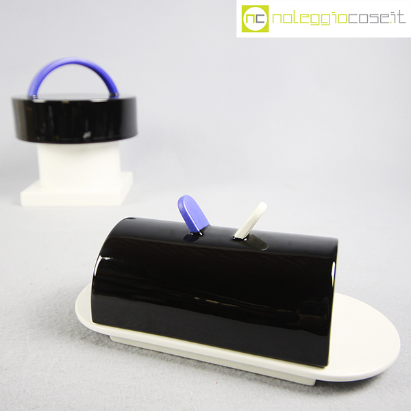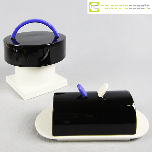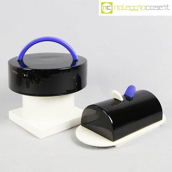Bitossi, biscottiera e burriera Hollywood Collection, Marco Zanini, 1992, biscottiera cm 18,5×18,5×21, burriera cm 24x11x10