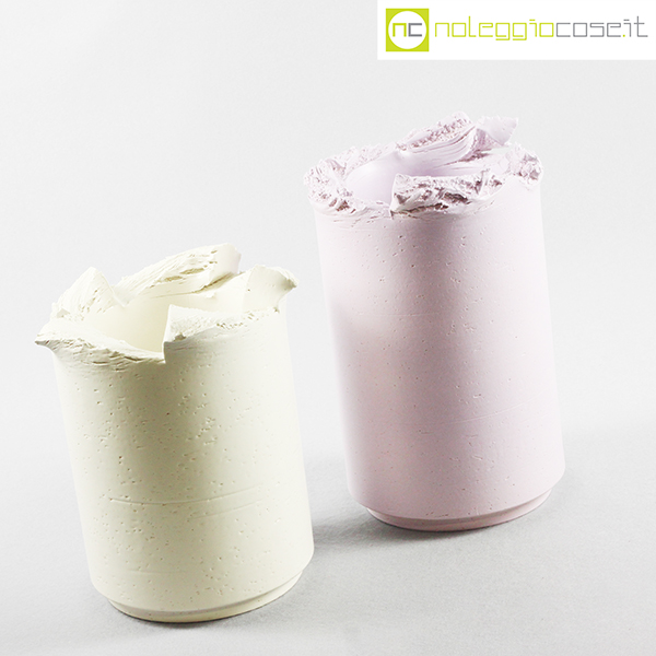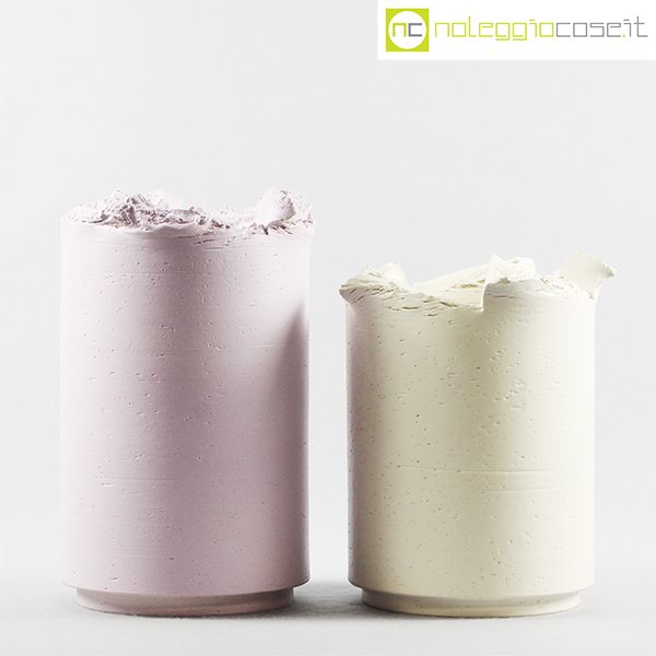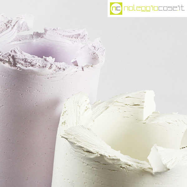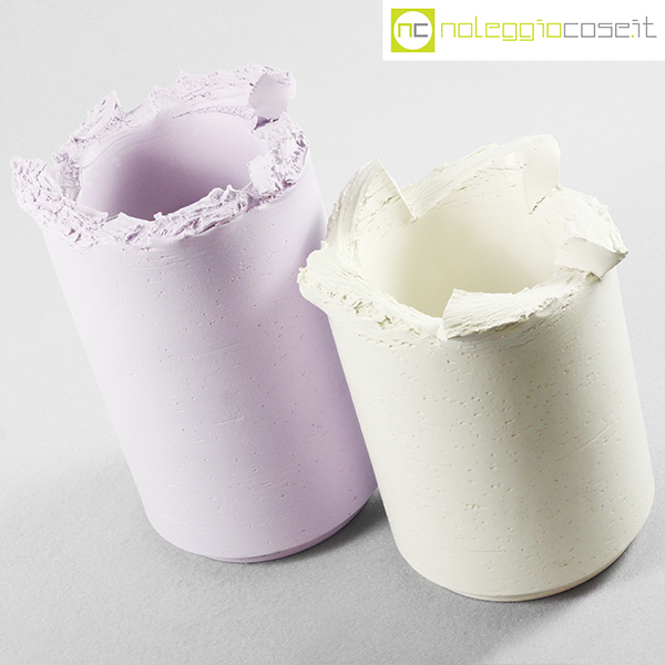 Bitossi, vasi collezione Vasi Strappati, Studio Formafantasma, 2018, lilla cm 18x18x28, bianco cm 19x19x24