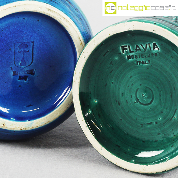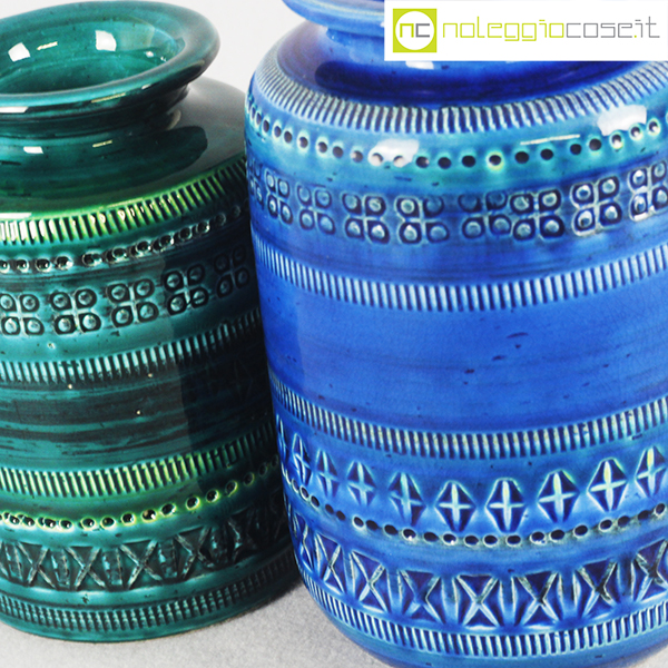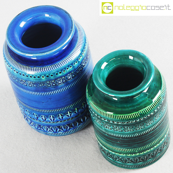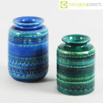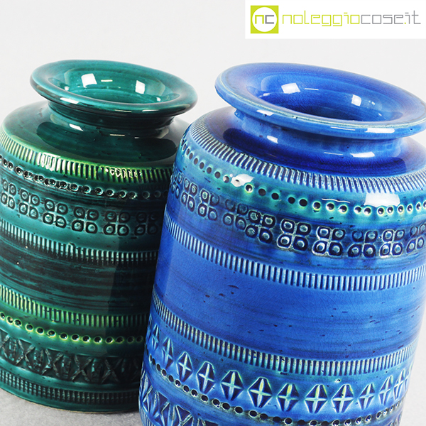 Bitossi, vasi blu e verde serie Rimini, Aldo Londi, 1959, vaso blu cm 12x12x18, vaso verde cm 10,5×10,5×15,5