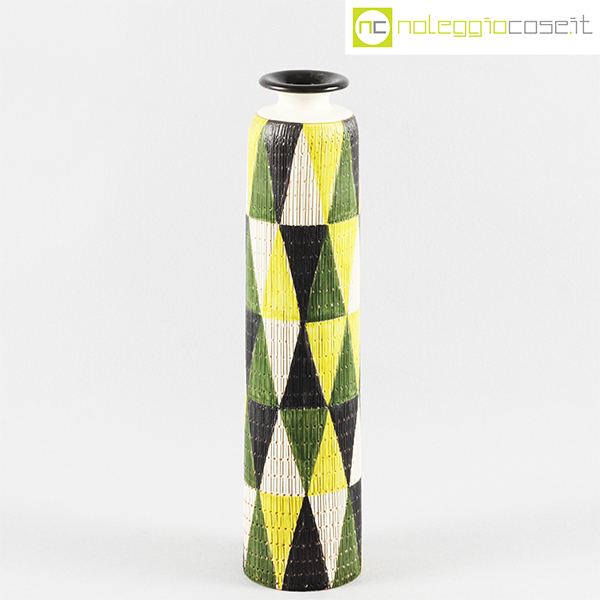 Bitossi, vaso alto decoro triangoli, 2003, cm 9×9 – h 39