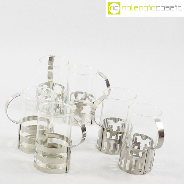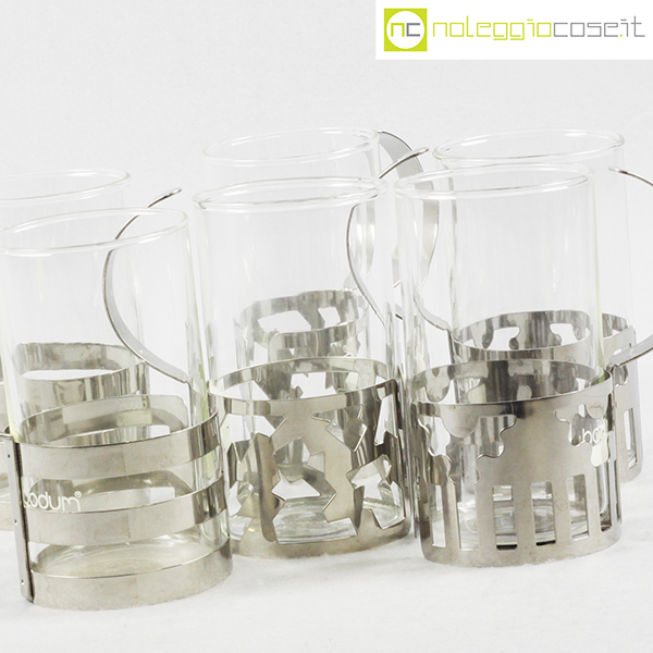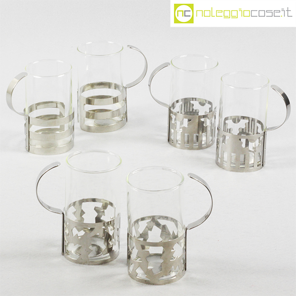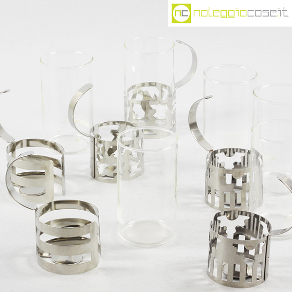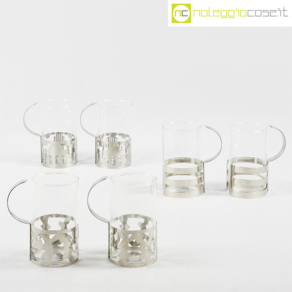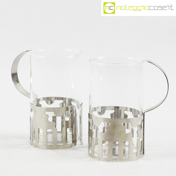 Bodum, set tazze in metallo e vetro, George Sowden, 1987, cm 8,5×6 – h 11