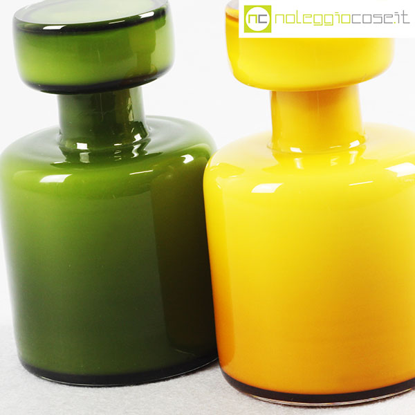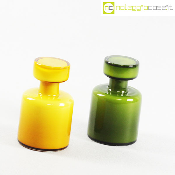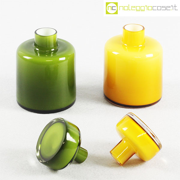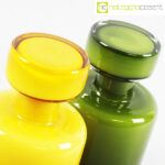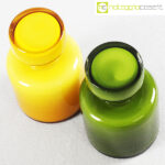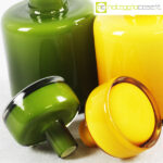 Bottiglie in vetro incamiciato verde e giallo, cm 8×8 – h 13