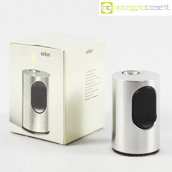 Braun, accendino da tavolo T2 acciaio, Dieter Rams, 1968, cm 5,5×5,5 – h 8