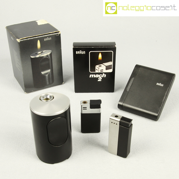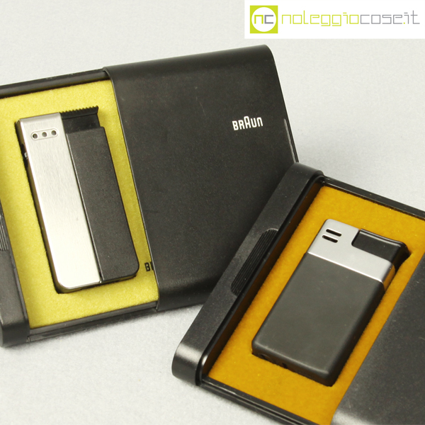 Braun, accendino Mach 2 e Duo, Dieter Rams, 1971, Mach 2 cm 3×1,5×6, Duo cm 3×1,5×6,5, box cm 7,5×9,5×2