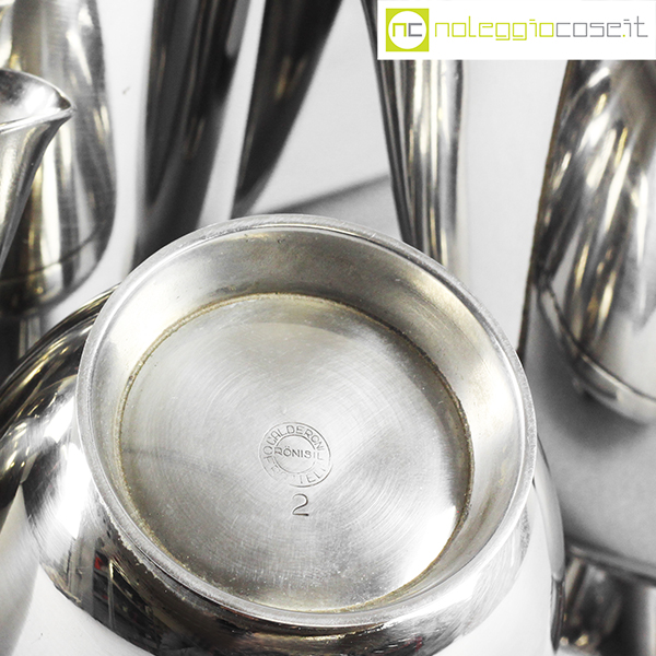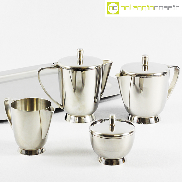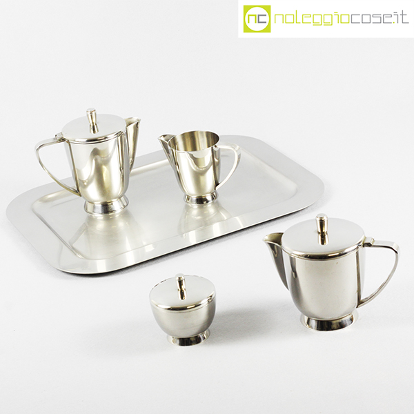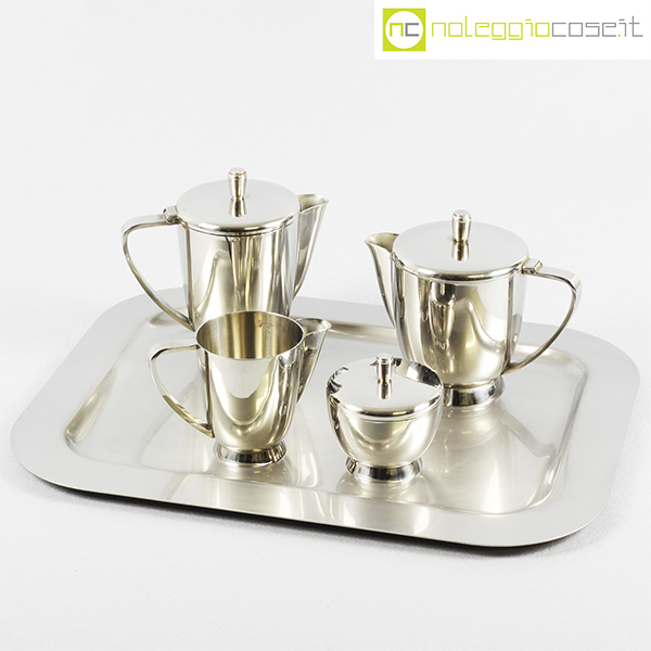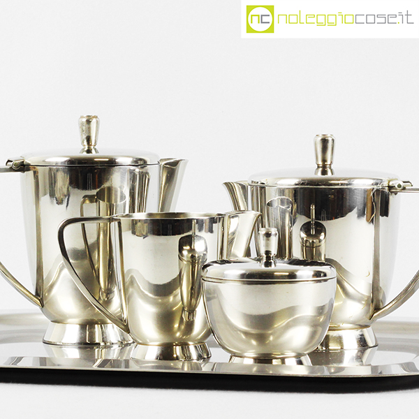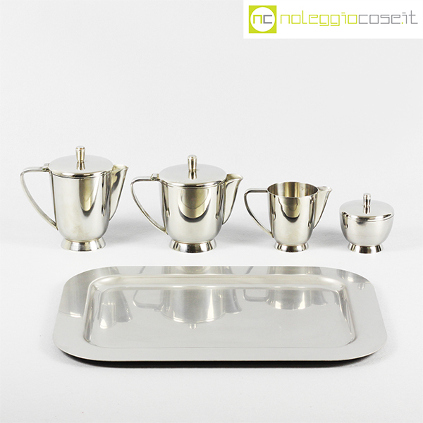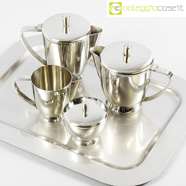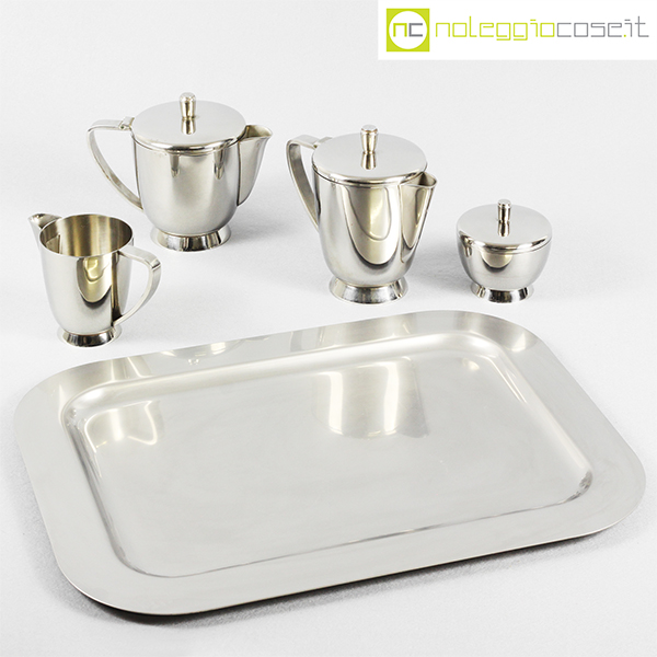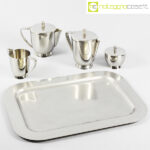 Calderoni, set da tè e caffè con vassoio, Gio Ponti, 1964, vassoio cm 42×32, altezza elementi da cm 8,5 a cm 15