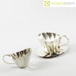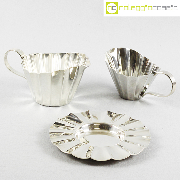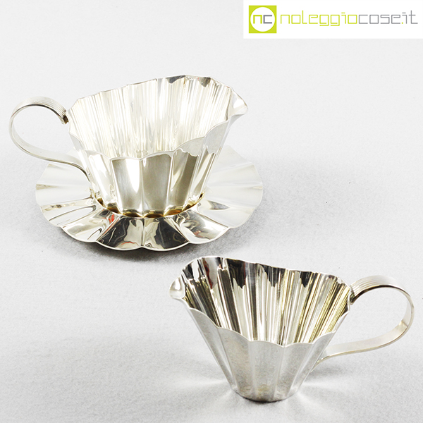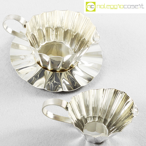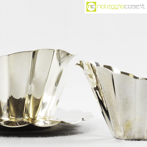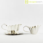 Calegaro, set salsiere serie Pavillon, Massimo Vignelli, 1982, grande cm 18x12x9, piatto diametro cm 17,5, piccola cm 16x10x8