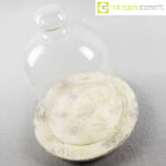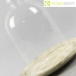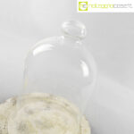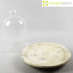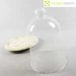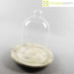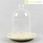 Campana in vetro con piatto in travertino, campana cm 17x17x25, piatto diam. 24
