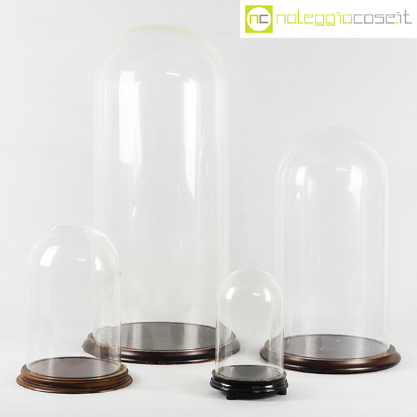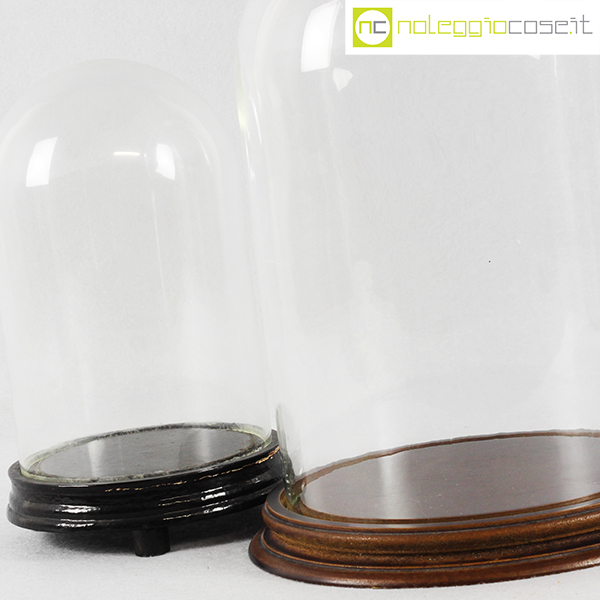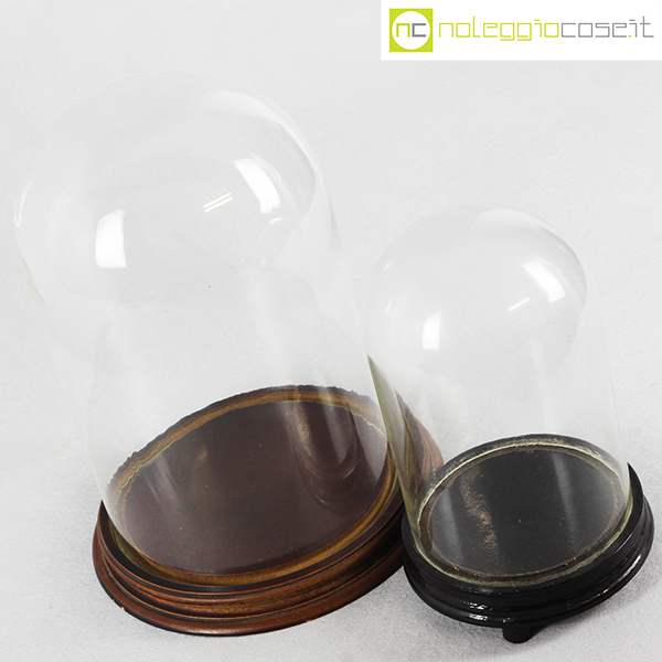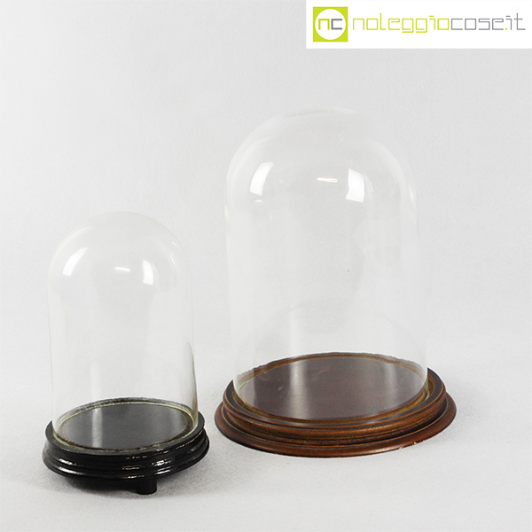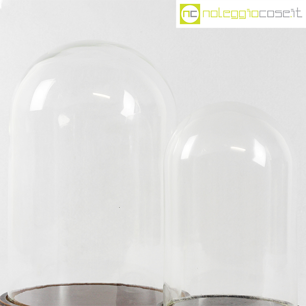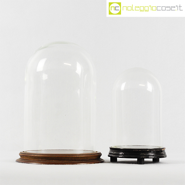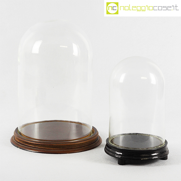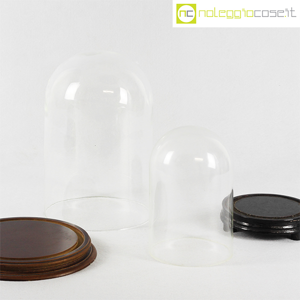 Campane in vetro per esposizione set piccolo, campana grande cm 19x19x30 – base diam. cm 23,5, campana piccola cm 13,5×13,5×21 – base diam. cm 15,5