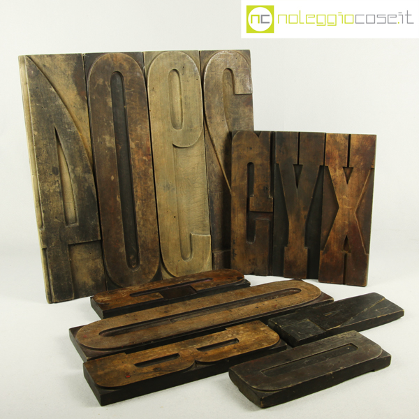 Caratteri tipografici grandi dimensioni, altezza cm 45 – 30 – 23