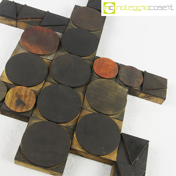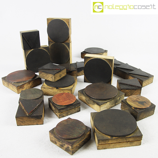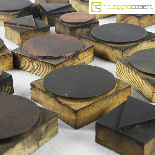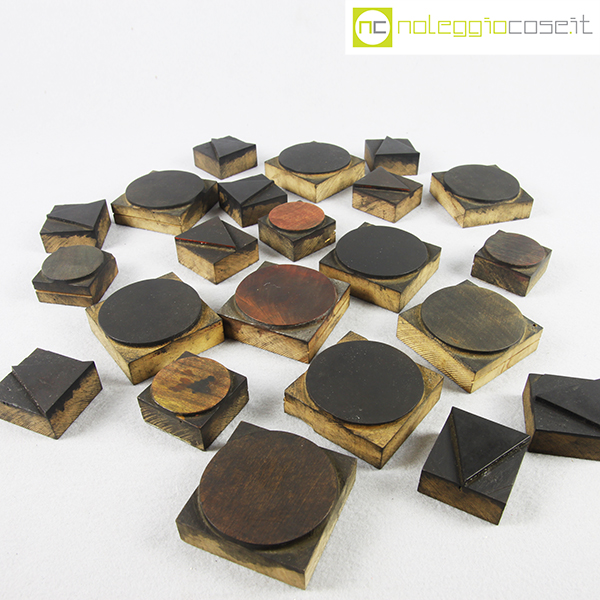Caratteri tipografici in legno FORME, grandi cm 6,5×6,5, piccole cm 4,5×4,5