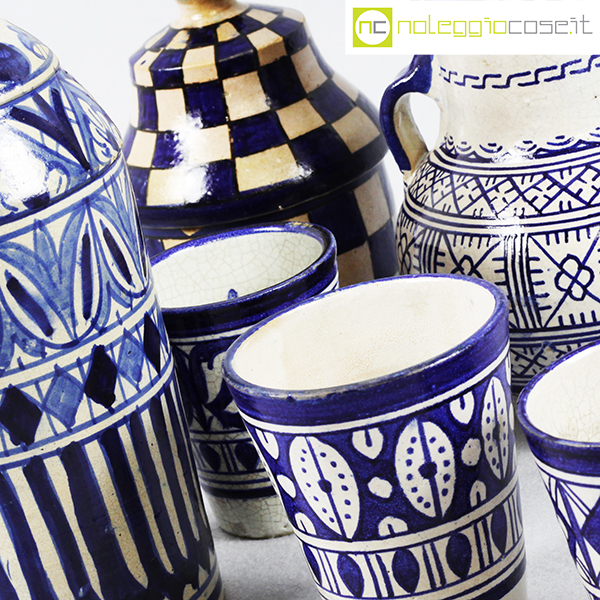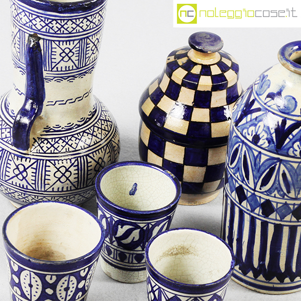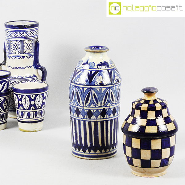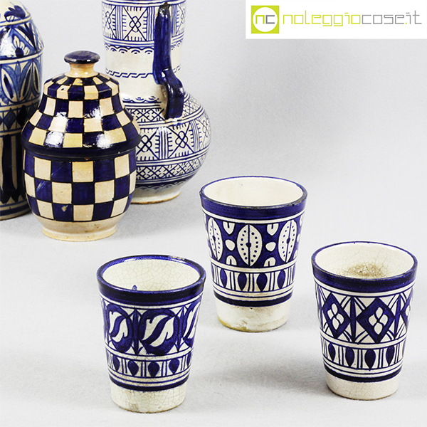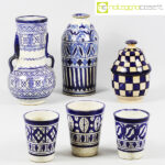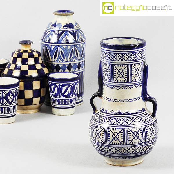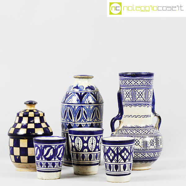 Ceramiche Marocchine antiche, vaso bottiglia cm 10x10x22,5, vaso con manici cm 13x13x23, contenitore cm 11x11x17, bicchieri h cm 9,5-10,5