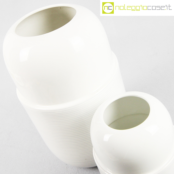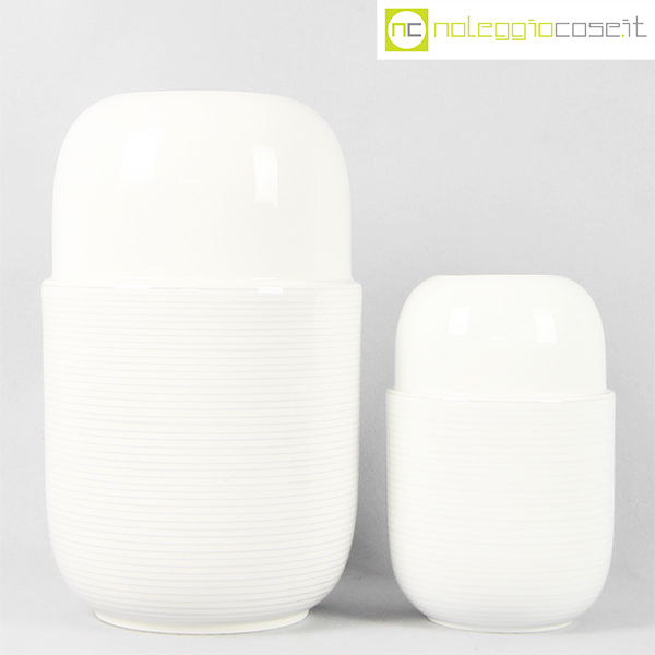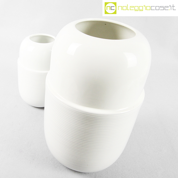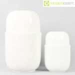 Ceramiche Munari, coppia di vasi bianchi, 1980, grande cm 19x19x30,5, piccolo cm 13x13x20