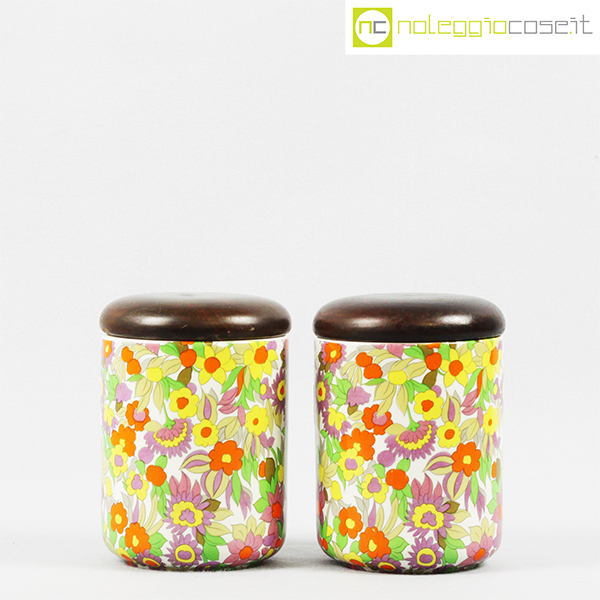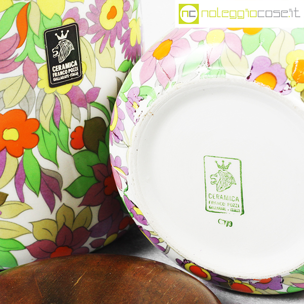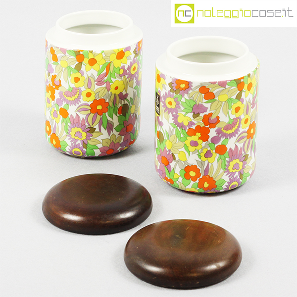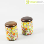 Ceramiche Franco Pozzi, set barattoli decoro POP, Ambrogio Pozzi, 1960, cm 10×10 – h 14