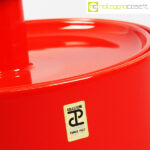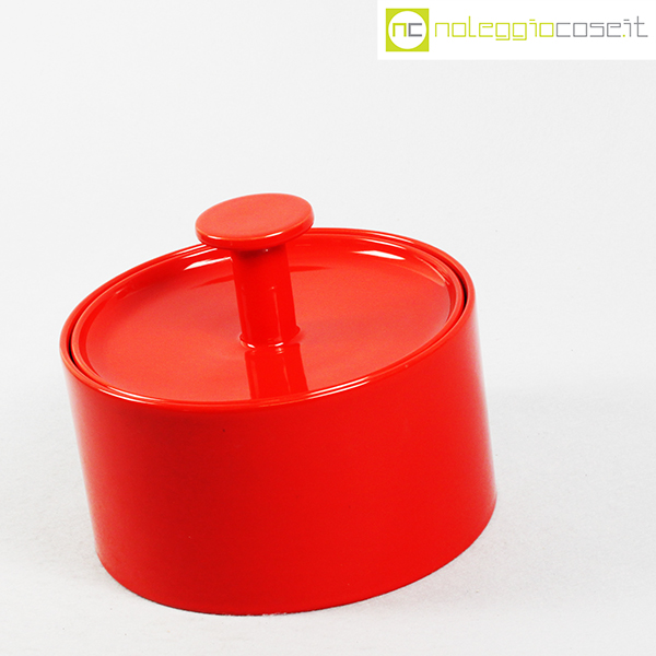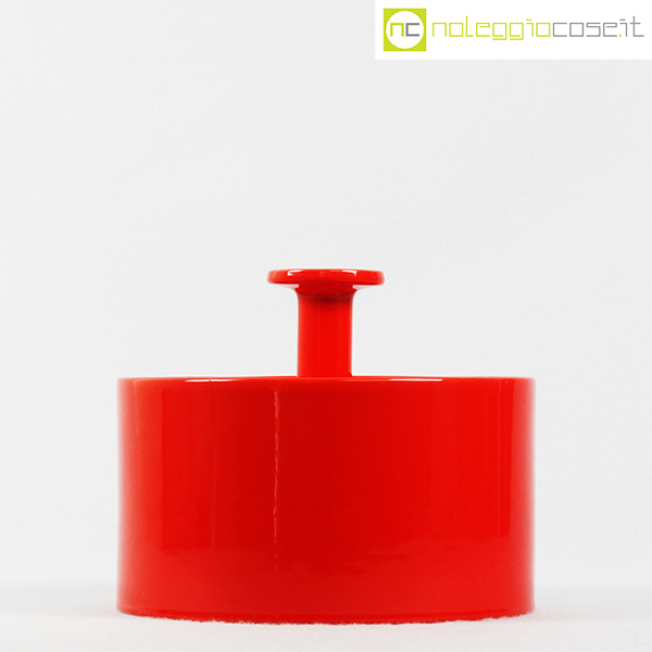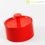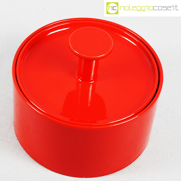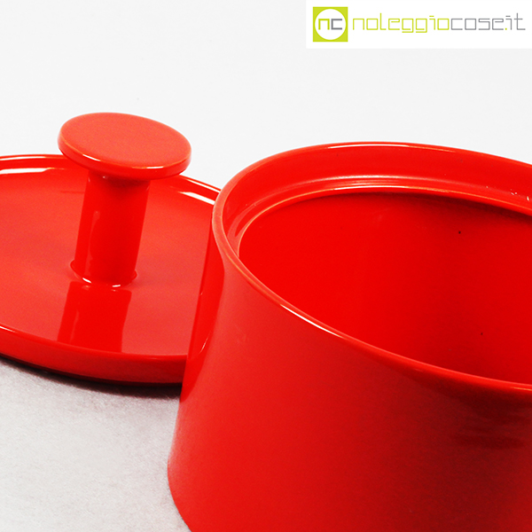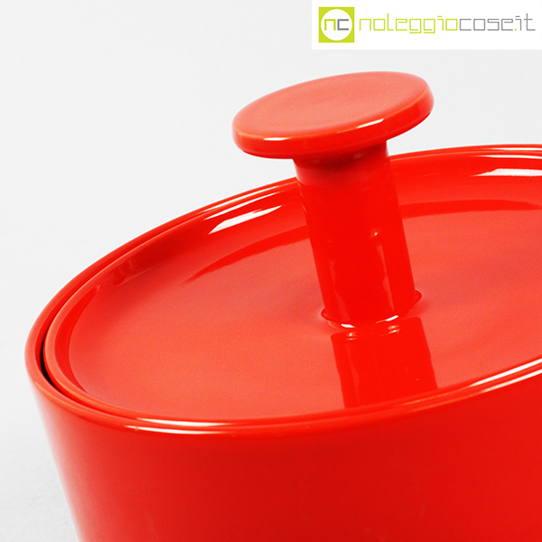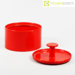 Ceramiche Franco Pozzi, biscottiera rossa con coperchio, Ambrogio Pozzi, 1970, cm 22×22 – h 18
