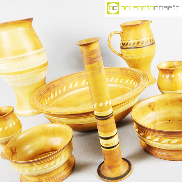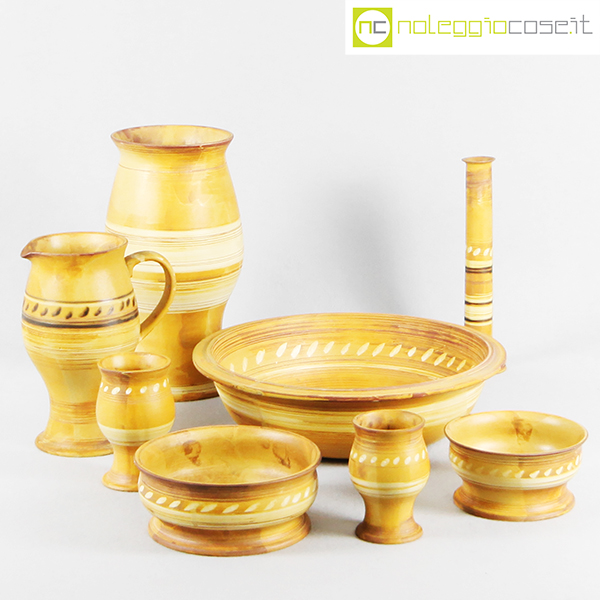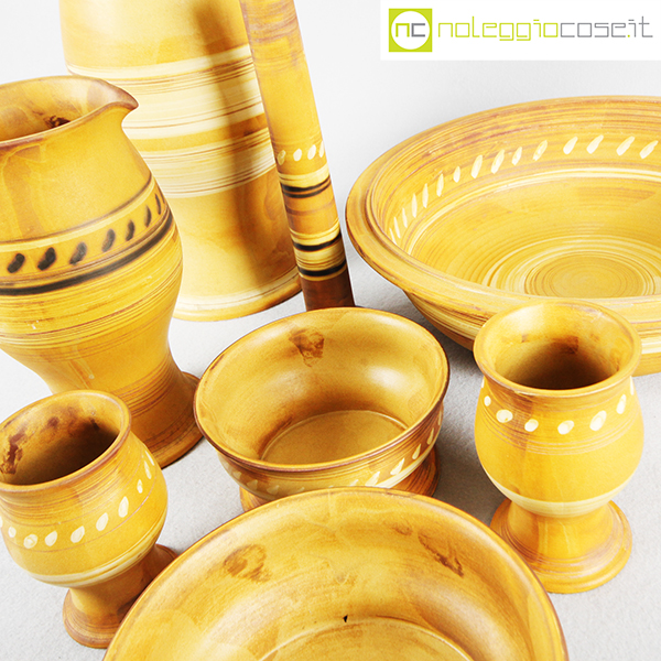 Ceramiche Franco Pozzi, set in ceramica serie “le Terre”, Ambrogio Pozzi, 1975, ciotola grande diam. cm 34, altezze da cm 7 a cm 30