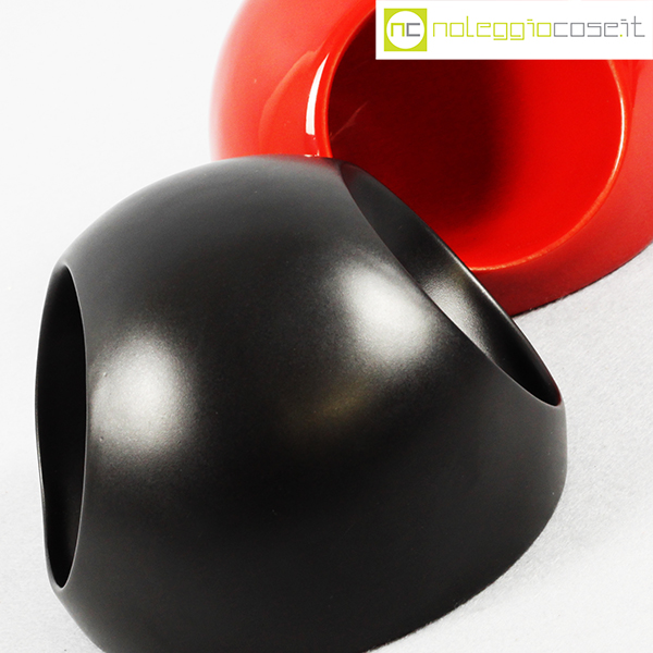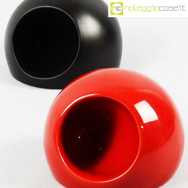 Ceramiche Franco Pozzi, oggetti in ceramica rosso e nero, Ambrogio Pozzi, 1970, cm 12×12 – h 9
