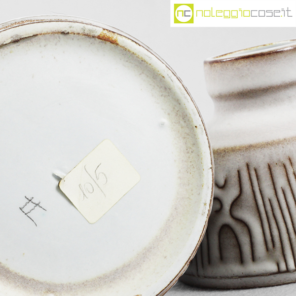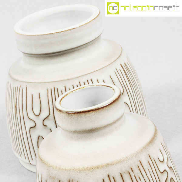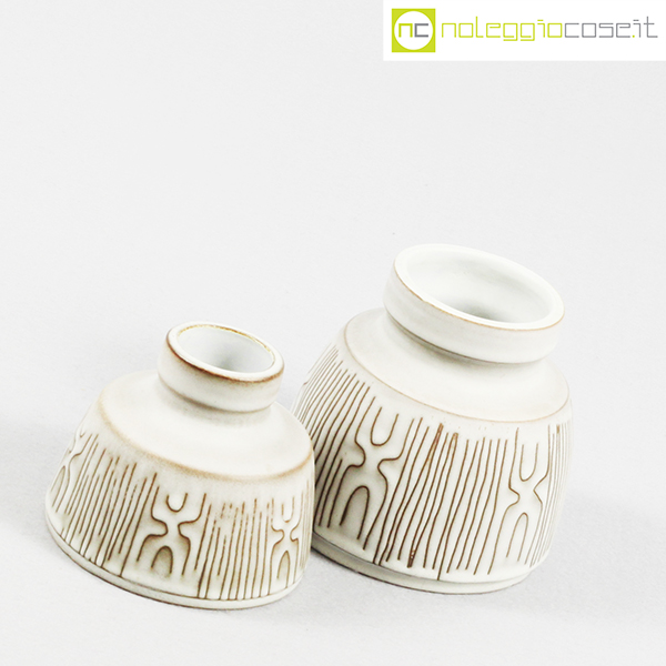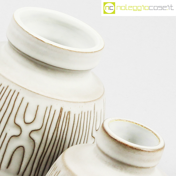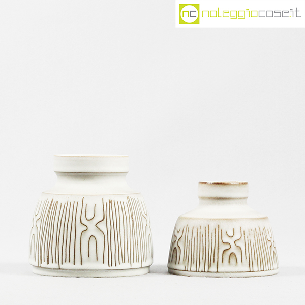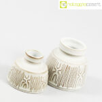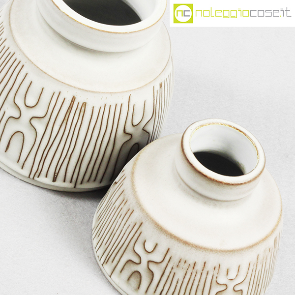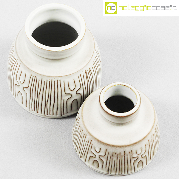 Ceramiche Franco Pozzi, coppia piccoli vasi con decori, Ambrogio Pozzi, 1955, grande cm 11,5×11,5×11, piccolo cm 10x10x8,5
