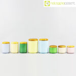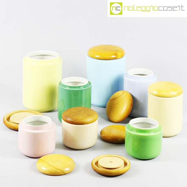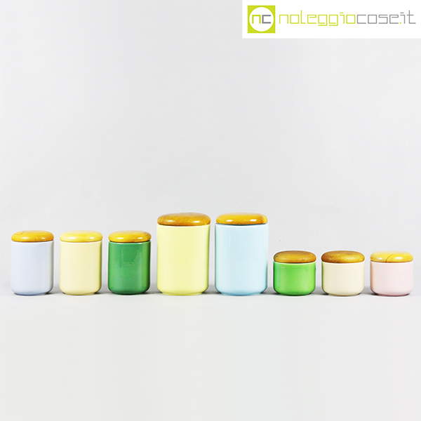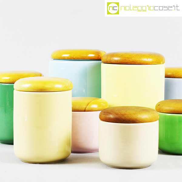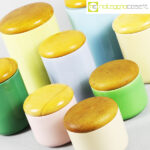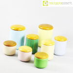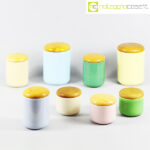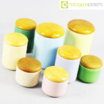 Ceramiche Franco Pozzi, barattoli color pastello SET 01, Ambrogio Pozzi, 1960, grandi cm 12,5×12,5×18, medi cm 10x10x14, piccoli cm 10x10x10
