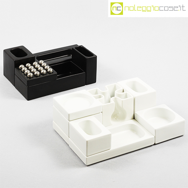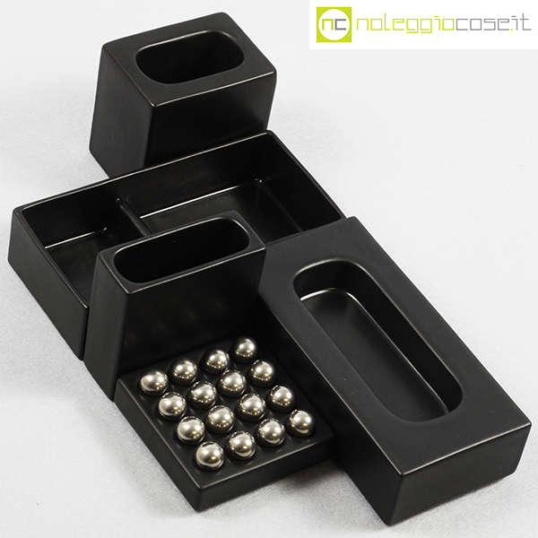 Ceramiche Franco Pozzi, set di ceramiche componibili Ensemble modello nero, Pierre Cardin, 1968, dimensioni varie, elementi quadrati cm 8,5×8,5, elementi rettangolari grandi cm 16,5×8,5