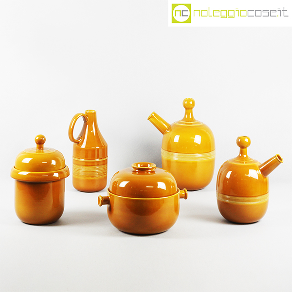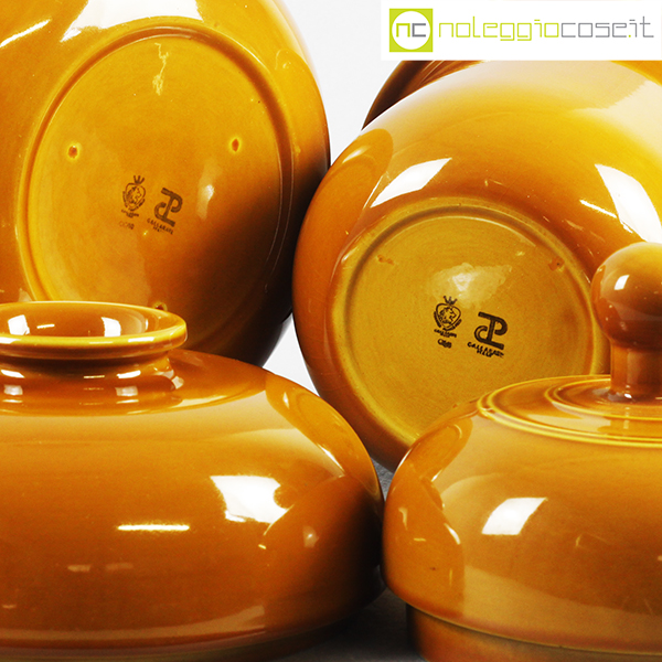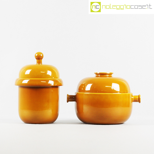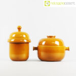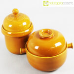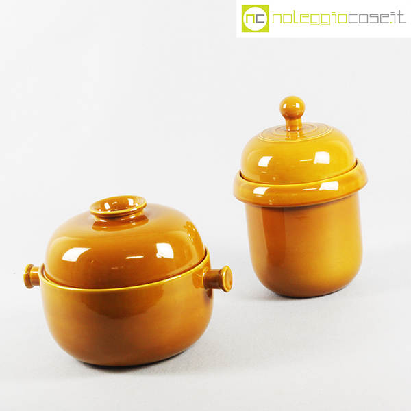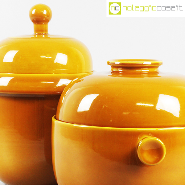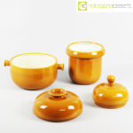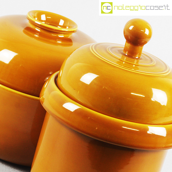Ceramiche Franco Pozzi, set contenitori ocra, Ambrogio Pozzi, 1966, contenitore alto cm 18x18x26, basso cm 27×21,5×19