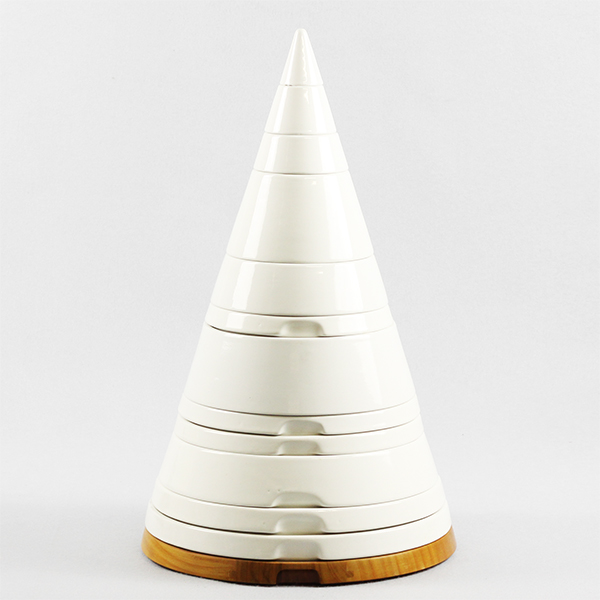 Ceramiche Franco Pozzi, set da tavola componibile Cono Completo, Pierre Cardin, 1969, cm 27×27 – h 45