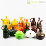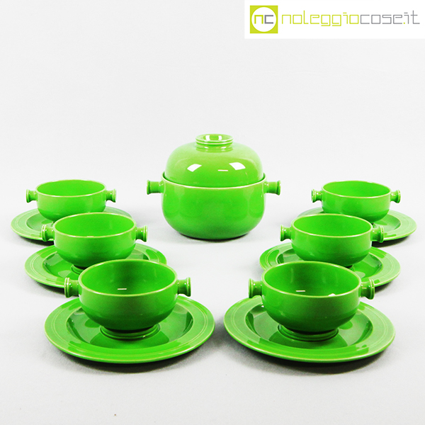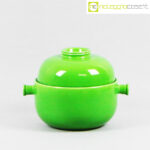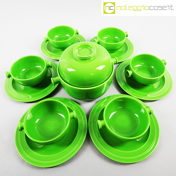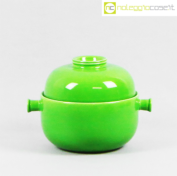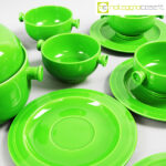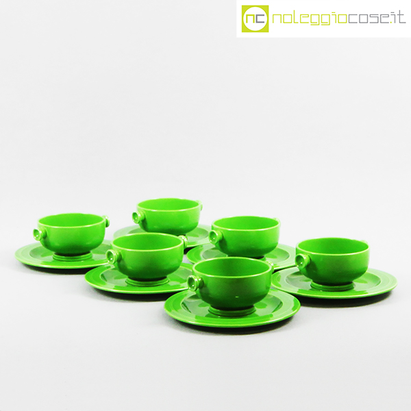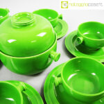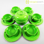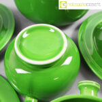Ceramiche Franco Pozzi, set verde serie Forma TR13, Ambrogio Pozzi, 1964, contenitore cm 21x17x15, tazze cm 14x11x6, piattini diam. cm 19