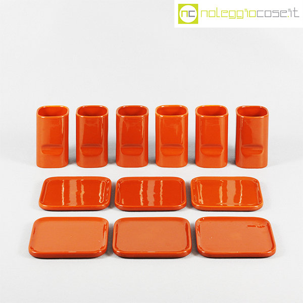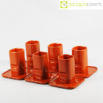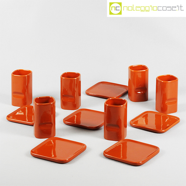Ceramiche Franco Pozzi, tazze bicchieri serie Sakura, Makio Hasuike, 1967, tazze cm 6x6x10, piattini cm 12×12