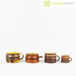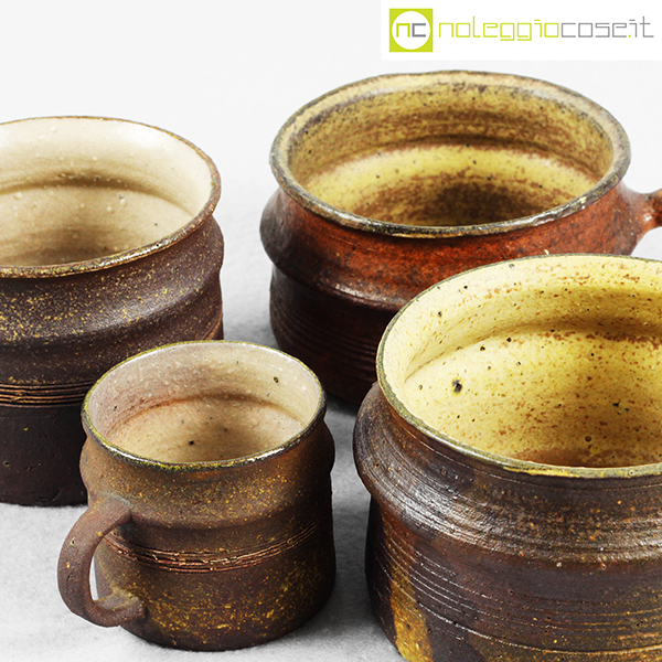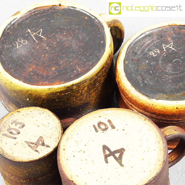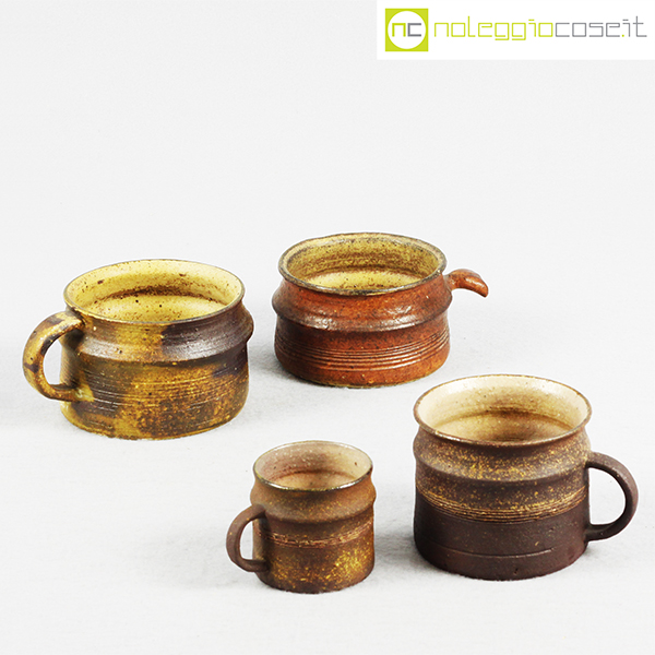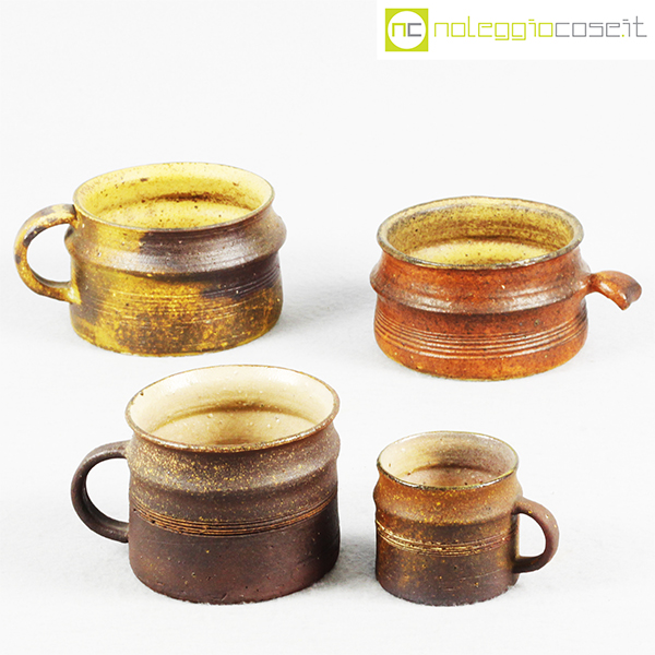 Ceramiche Franco Pozzi, set tazze con manico serie Rustica (4pz.), Ambrogio Pozzi, 1962, diam. da cm 5,5 a cm 10, altezze da cm 5 a cm 7