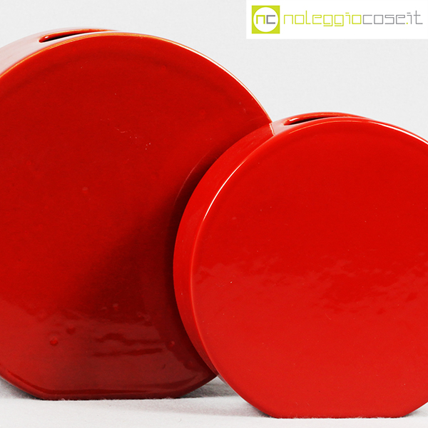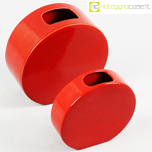 Ceramiche Franco Pozzi, vasi rossi serie Strutture Primarie, Ambrogio Pozzi, 1968, grande cm 21x9x20,5, piccolo cm 17x5x16,5