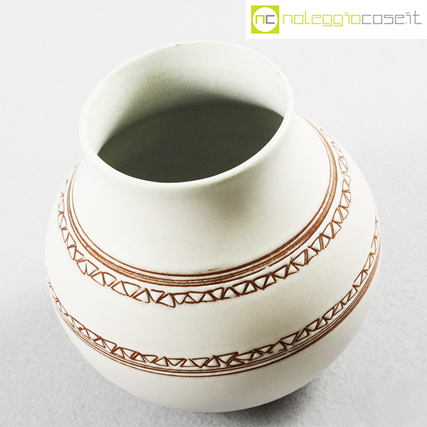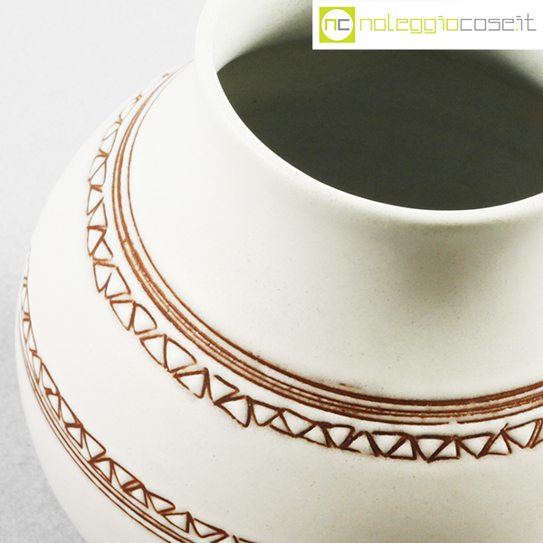 Ceramiche Franco Pozzi, vaso bianco con decori, Ambrogio Pozzi, 1970, cm 18×18 – h 18