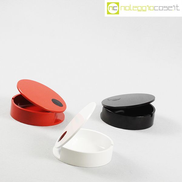 Cini & Nils, posacenere apribile nero, bianco e rosso, Studio OPI (F. Bettonica, M. Melocchi), 1975, cm 11,5×11,5 – h 3,5