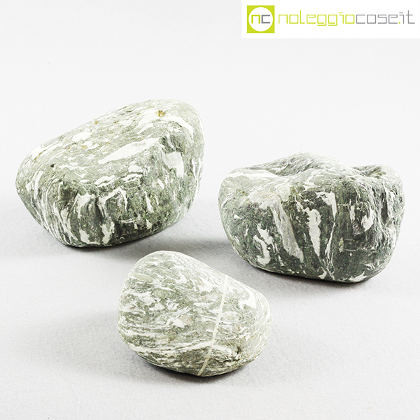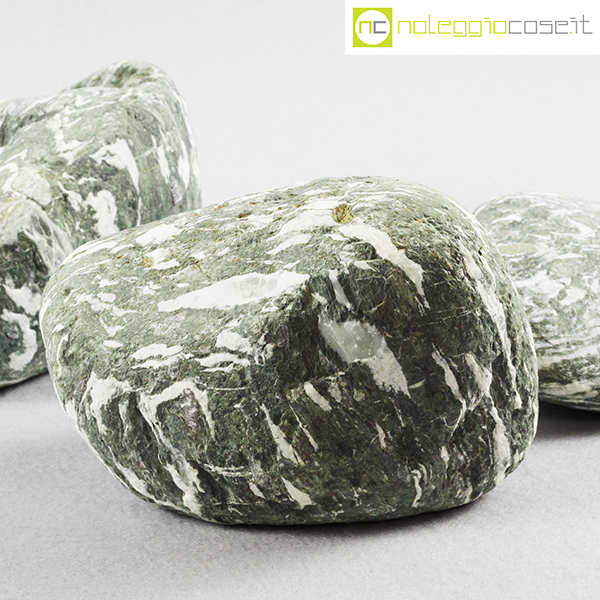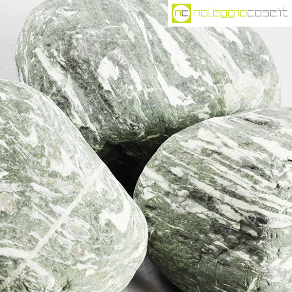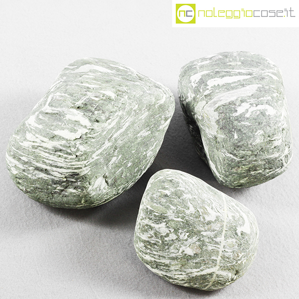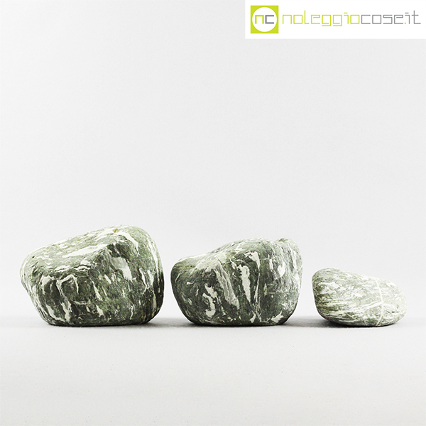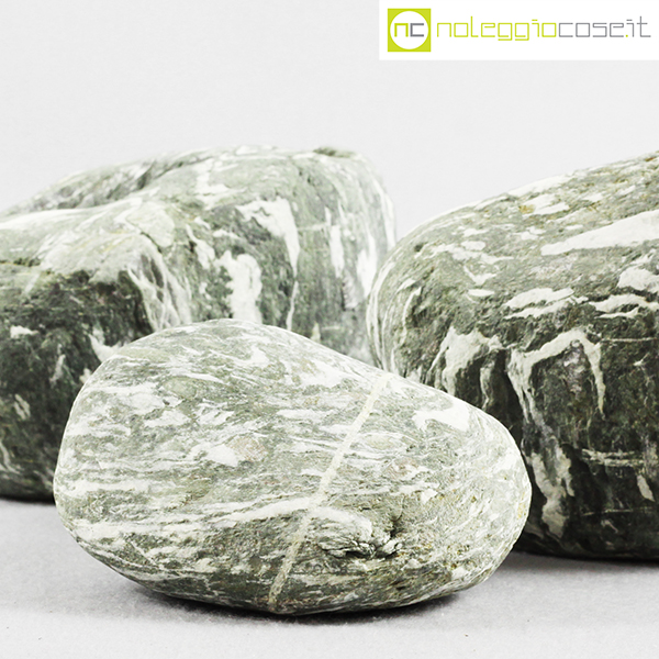 Ciottoli in pietra naturale verde, piccolo cm 12x11x7, medio cm 17x9x11, grande cm 20x10x13
